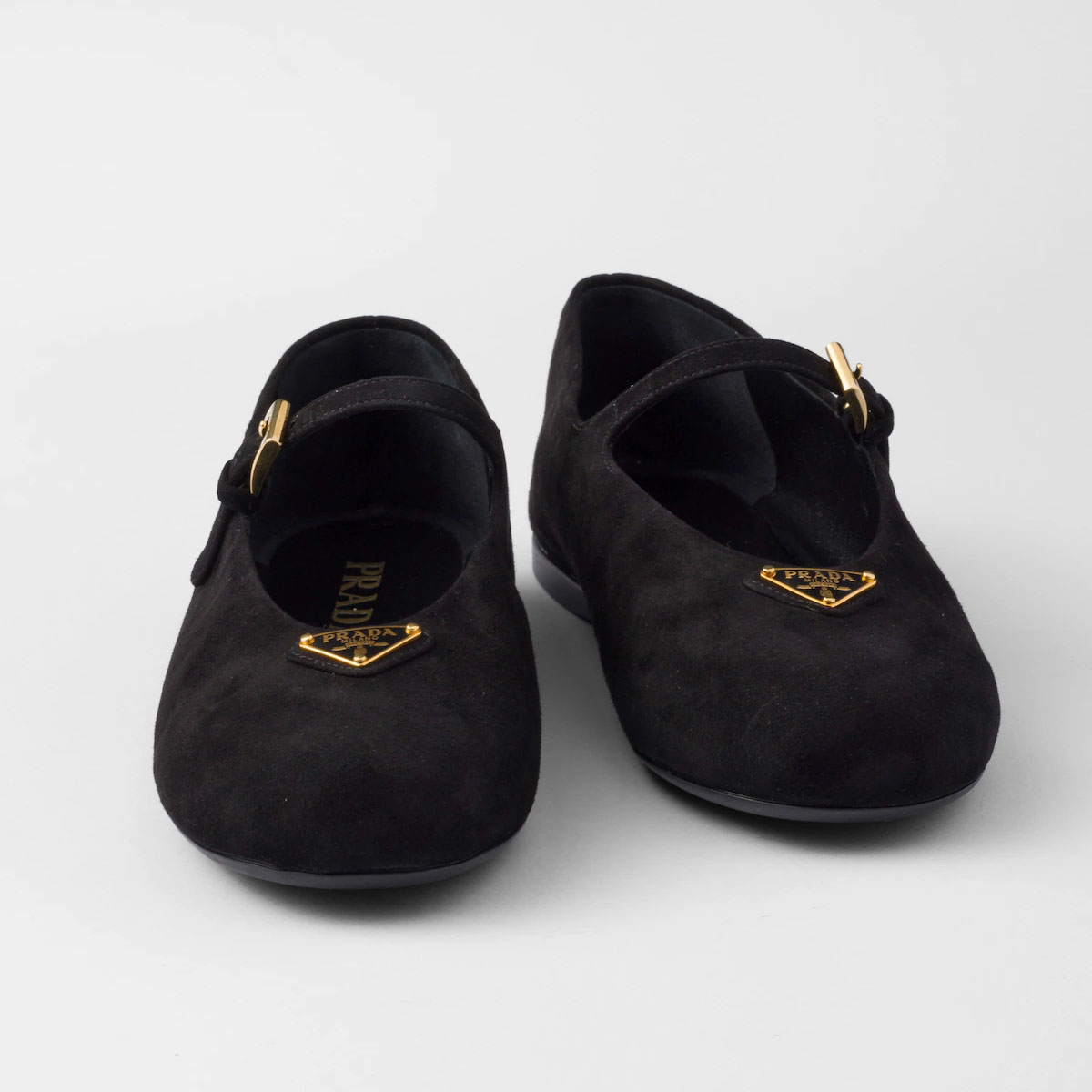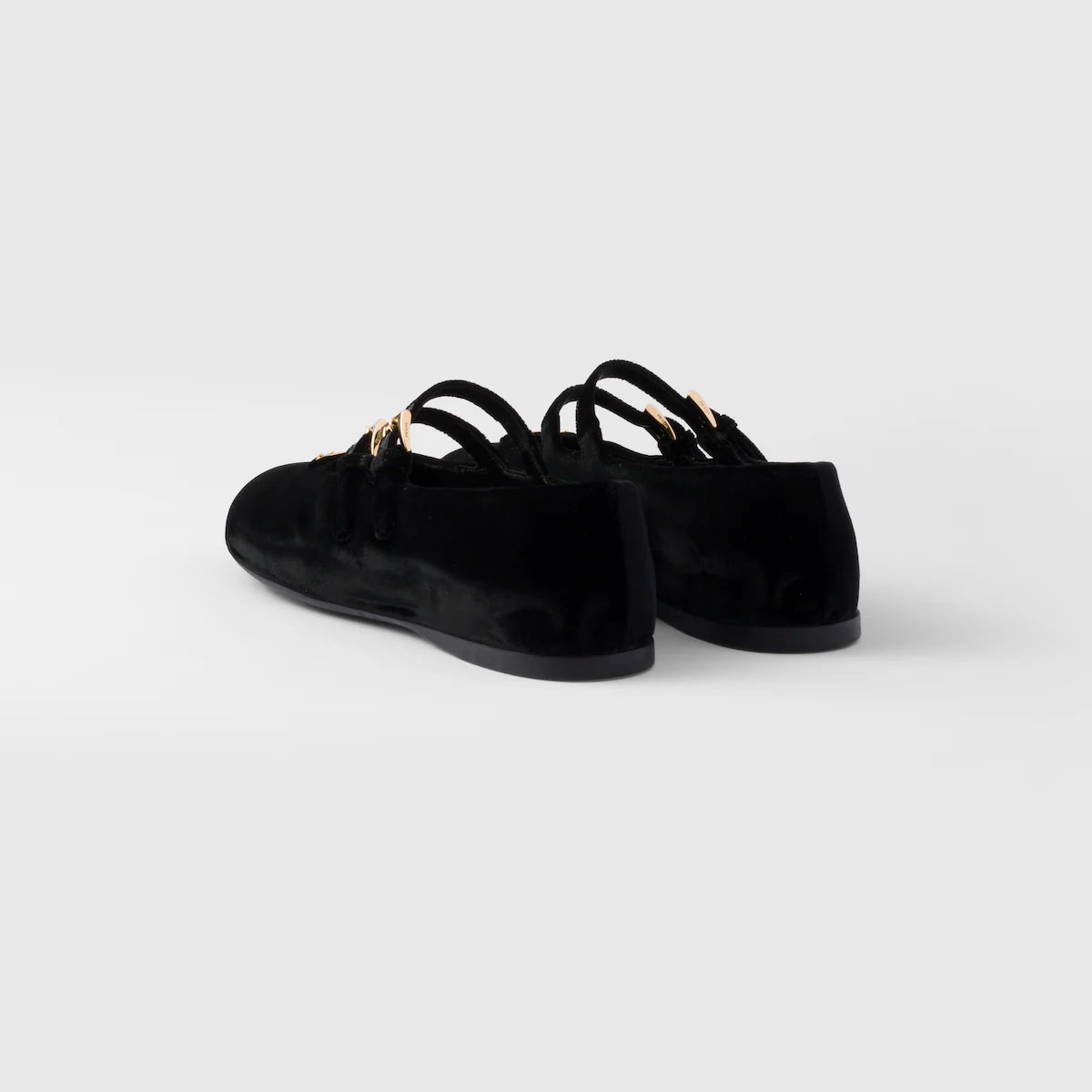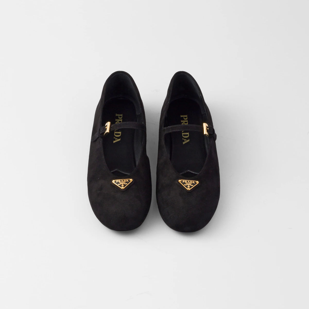 PRADA Surface of wool Flat Shoes black Ballet Shoes