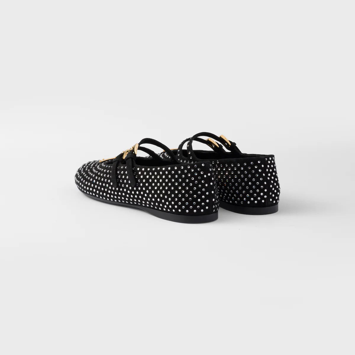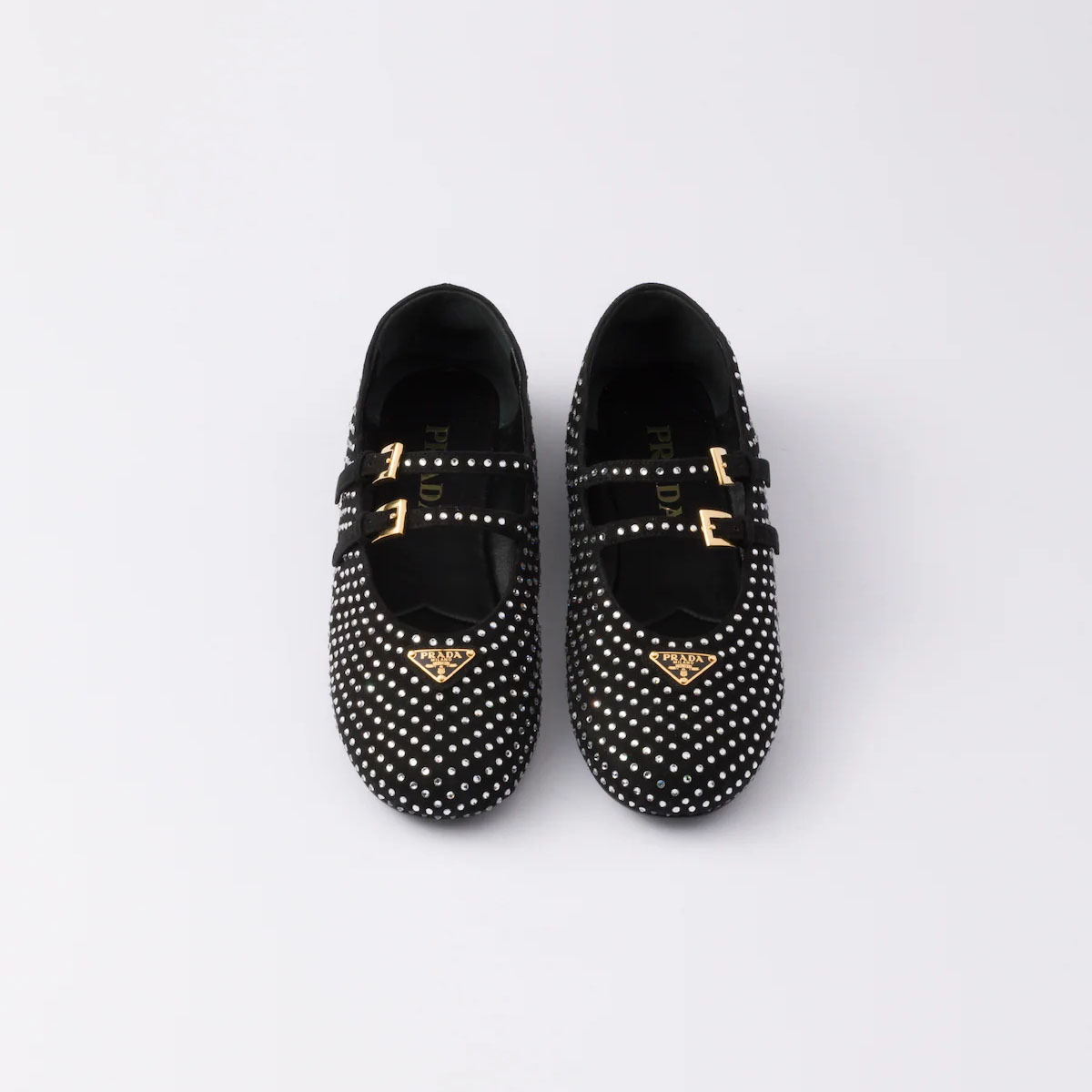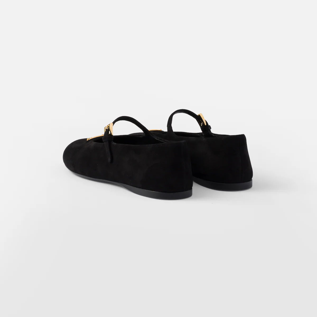 PRADA Surface of wool Flat Shoes black Ballet Shoes