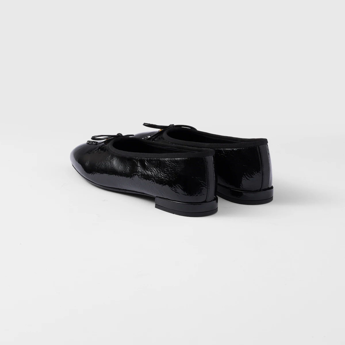 PRADA Patent paint leather Flat Shoes Black Ballet Shoes