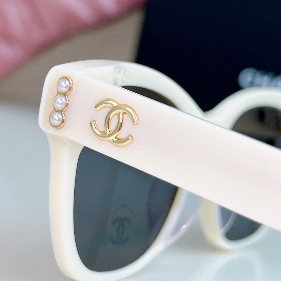 CHANEL square frame pearl glasses white color SIZE 54-17-140