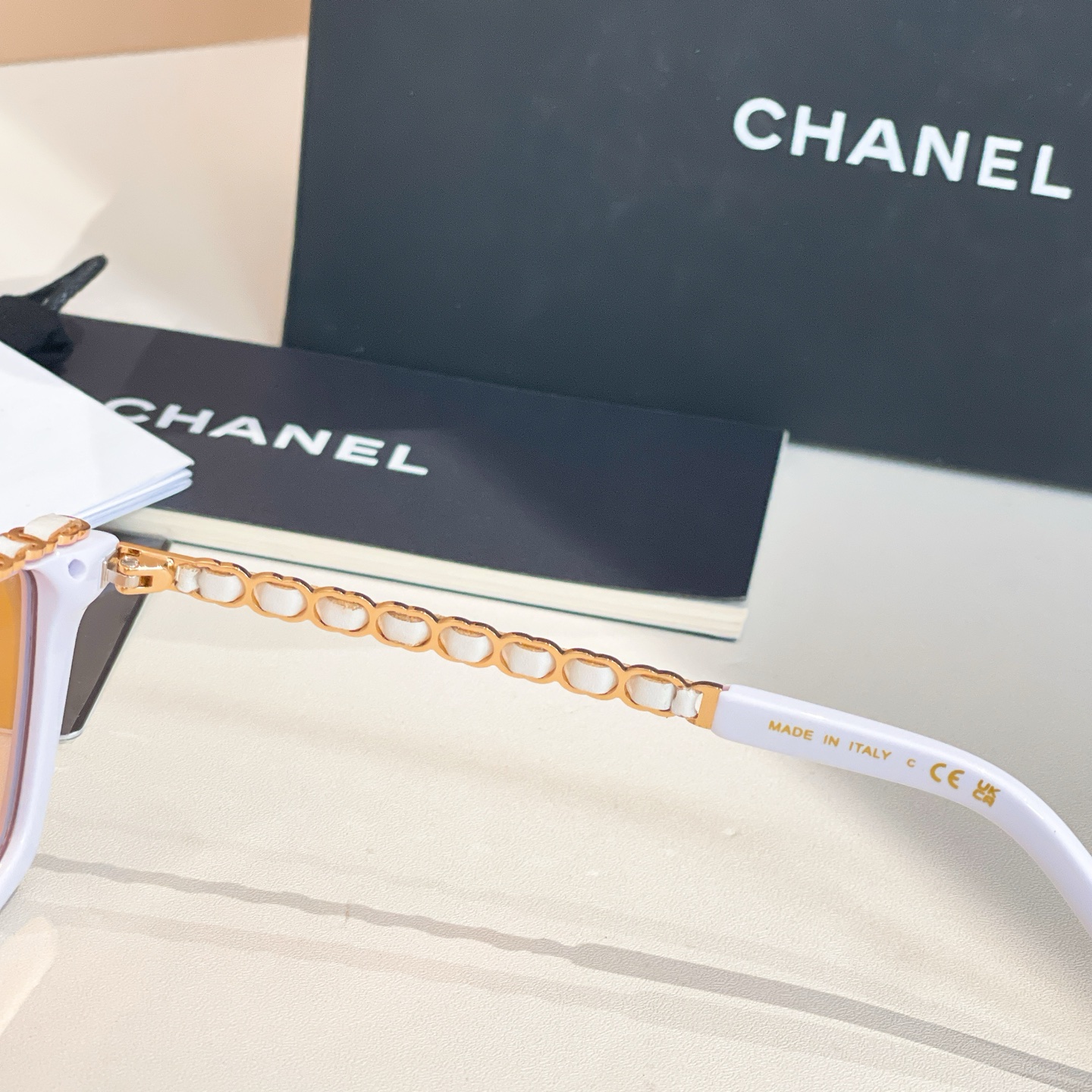 CHANEL square frame glasses white orange color SIZE 54口17-145