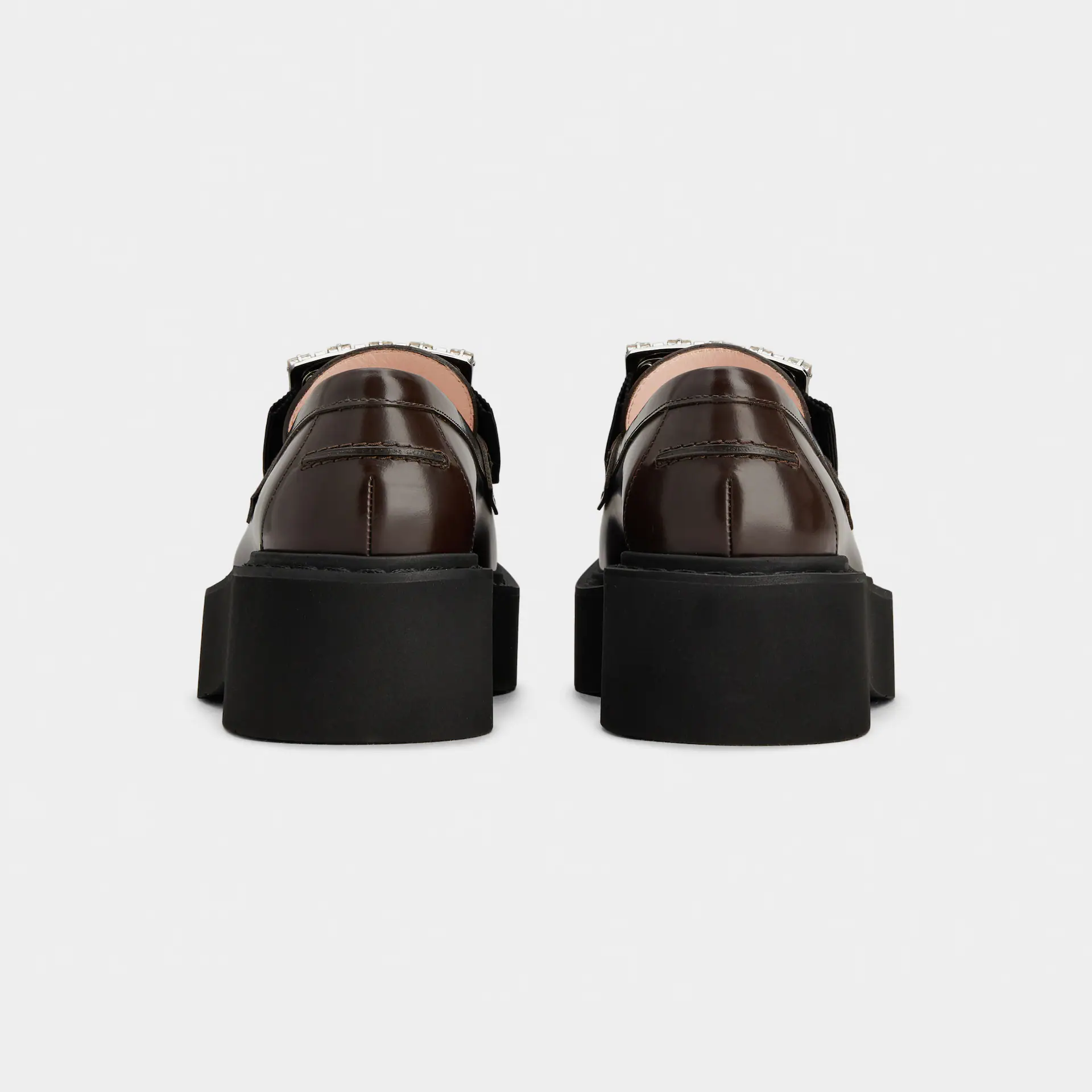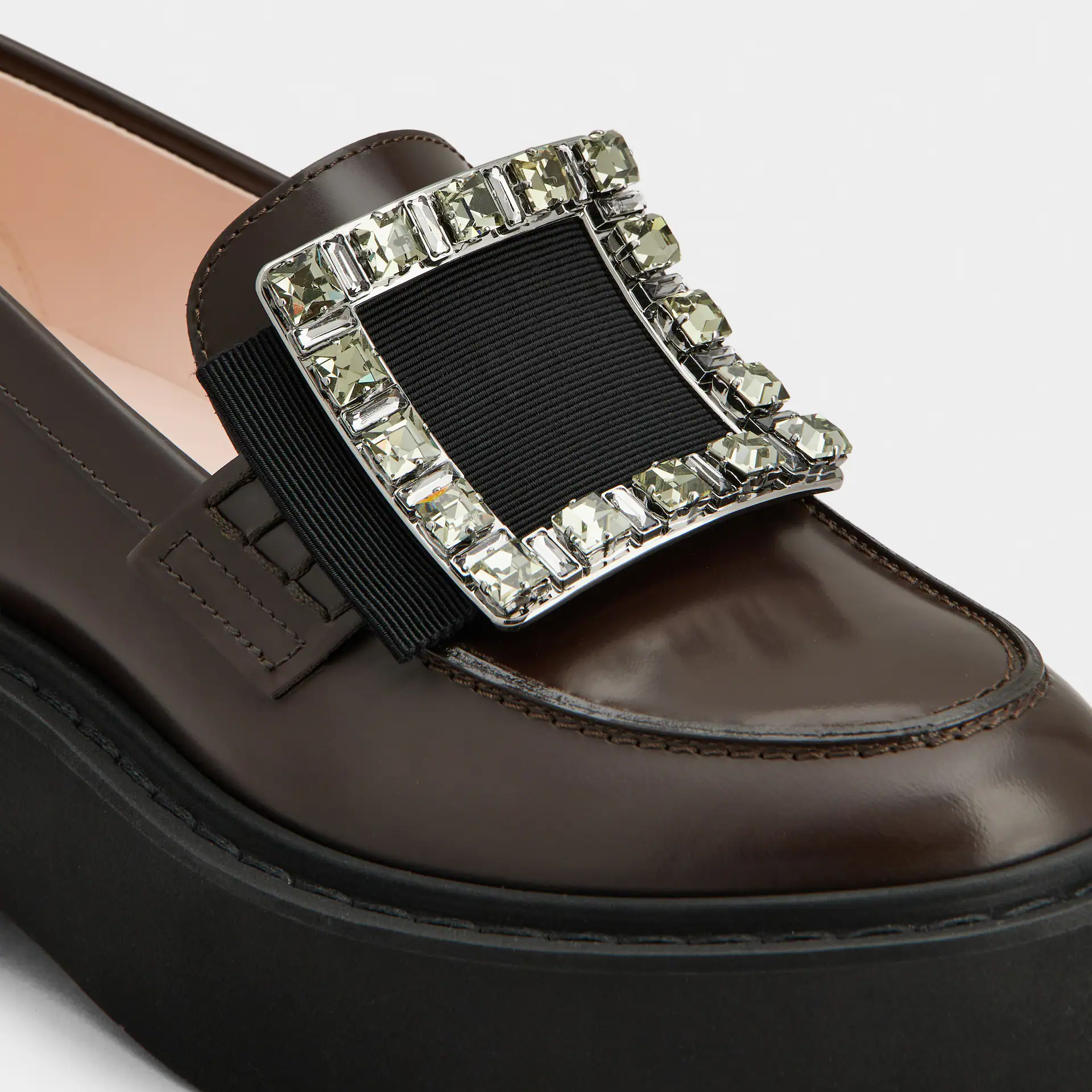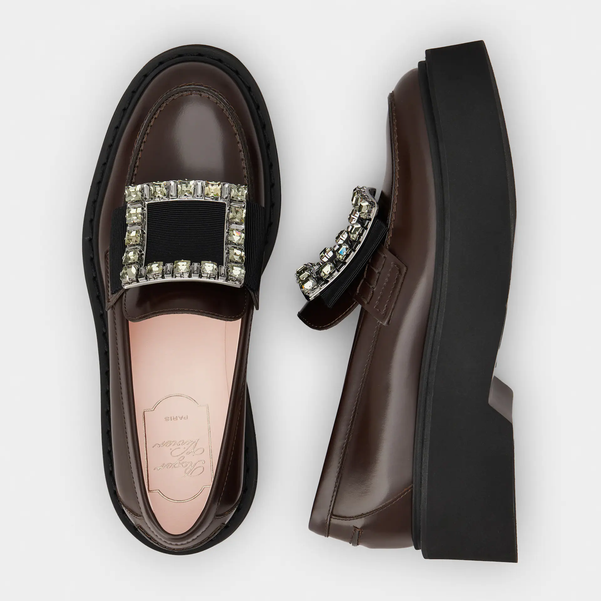 Roger Vivier Viv' Rangers Loafers In Brown Leather With Crystal Buckle (Heel Height 5.5cm)