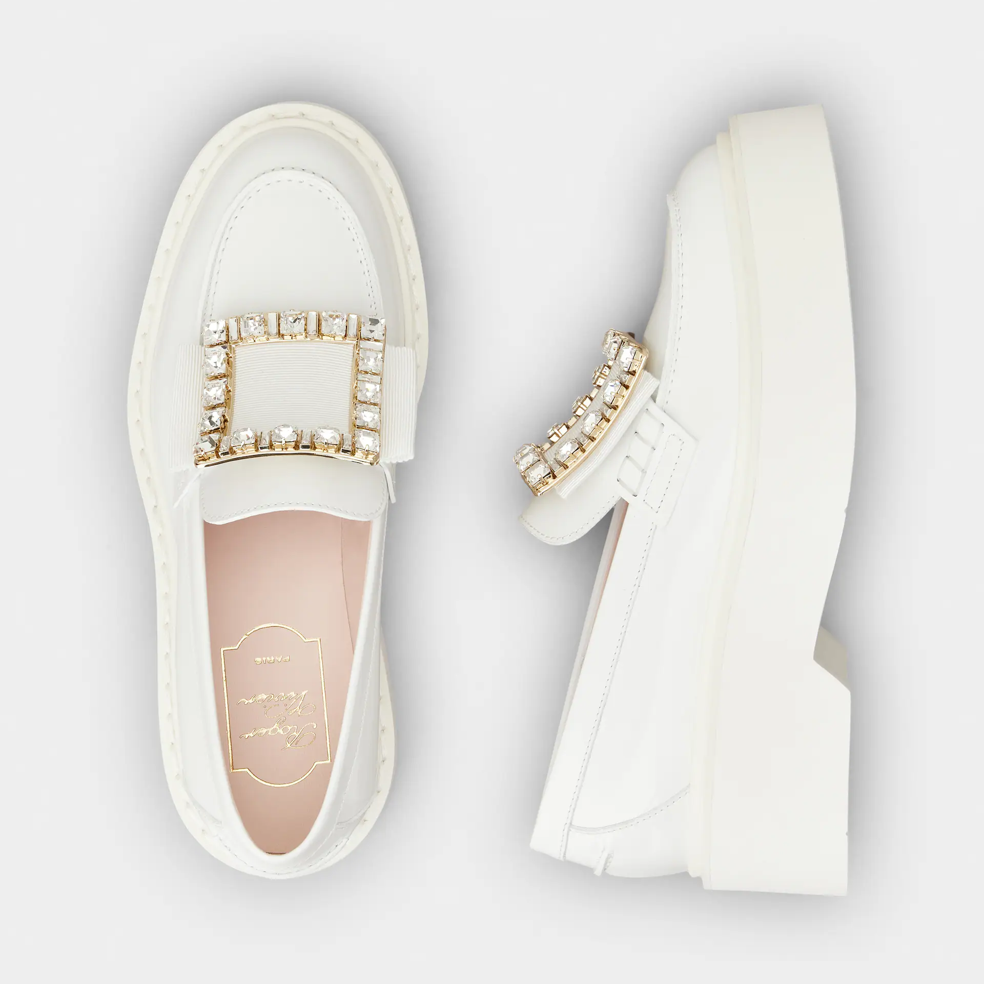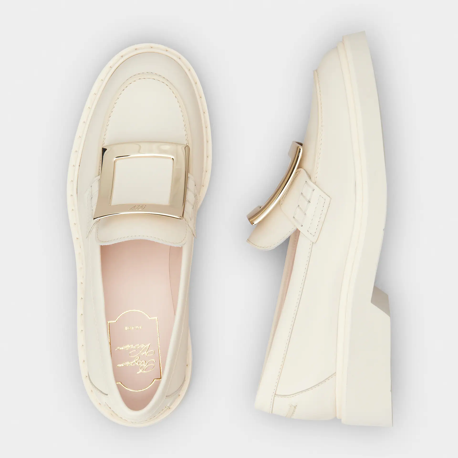 Roger Vivier Viv' Rangers Loafers In White Leather With Metal Buckle (Heel Height 2.5cm)