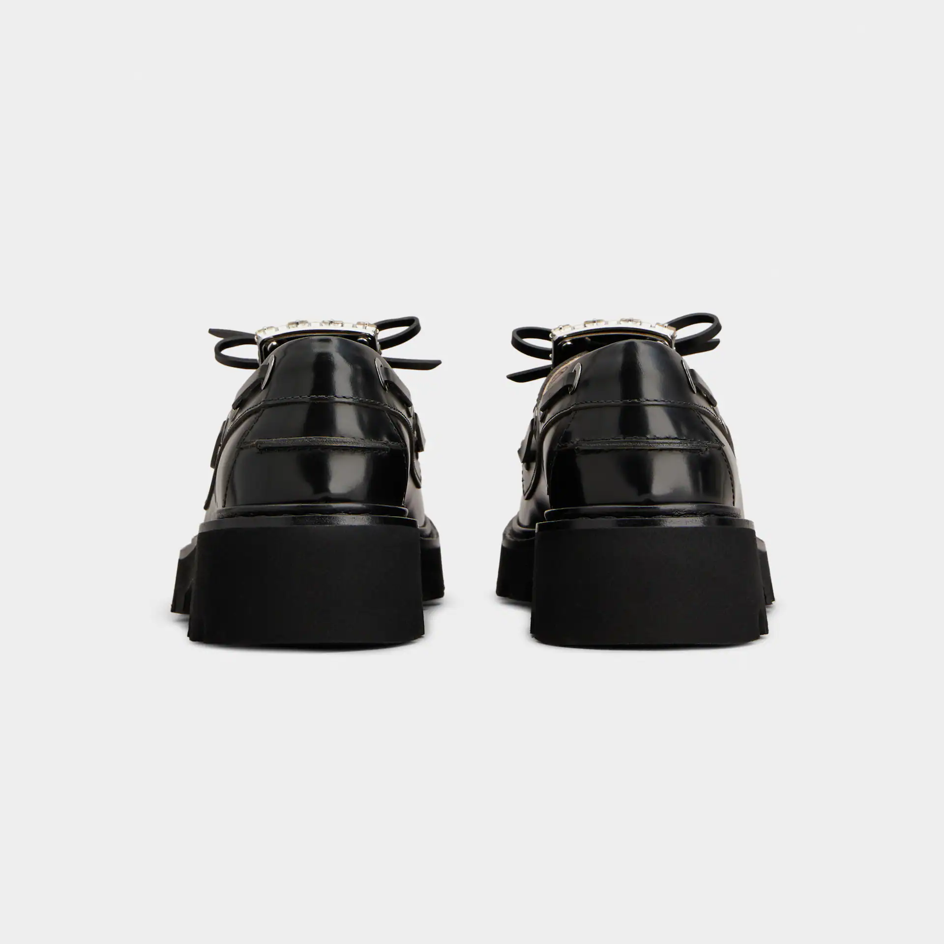 Roger Vivier Viv' Rangers Truck Boat Shoes Loafers In Black Leather With Crystal Buckle (Heel Height 4.5cm)
