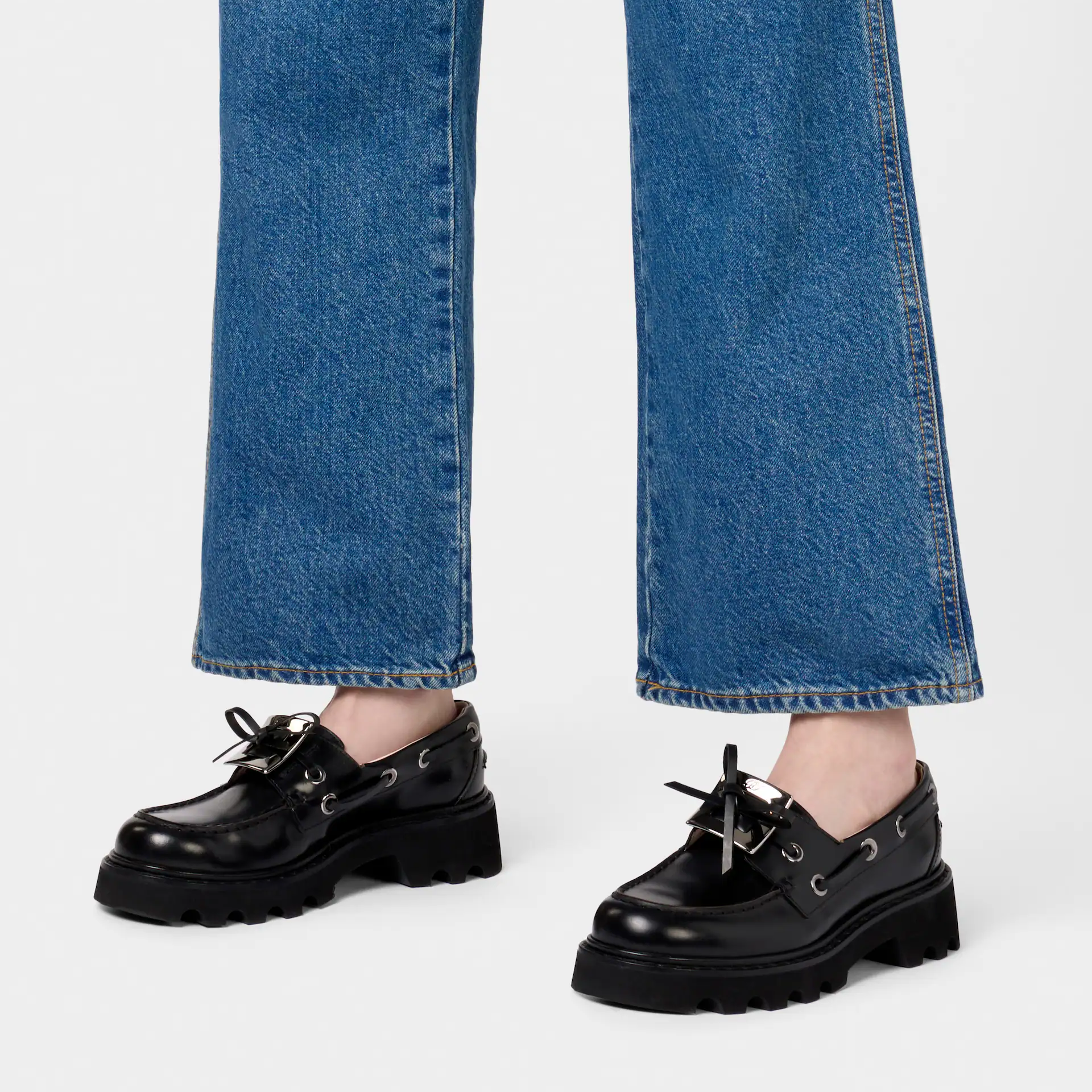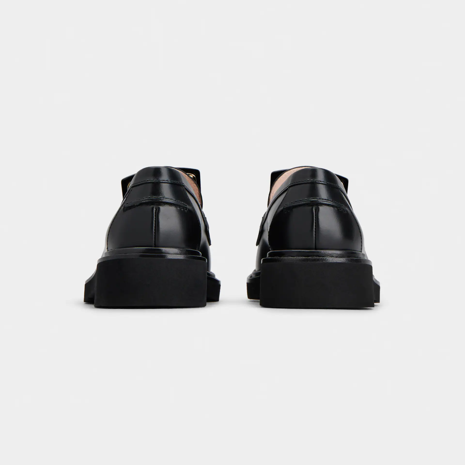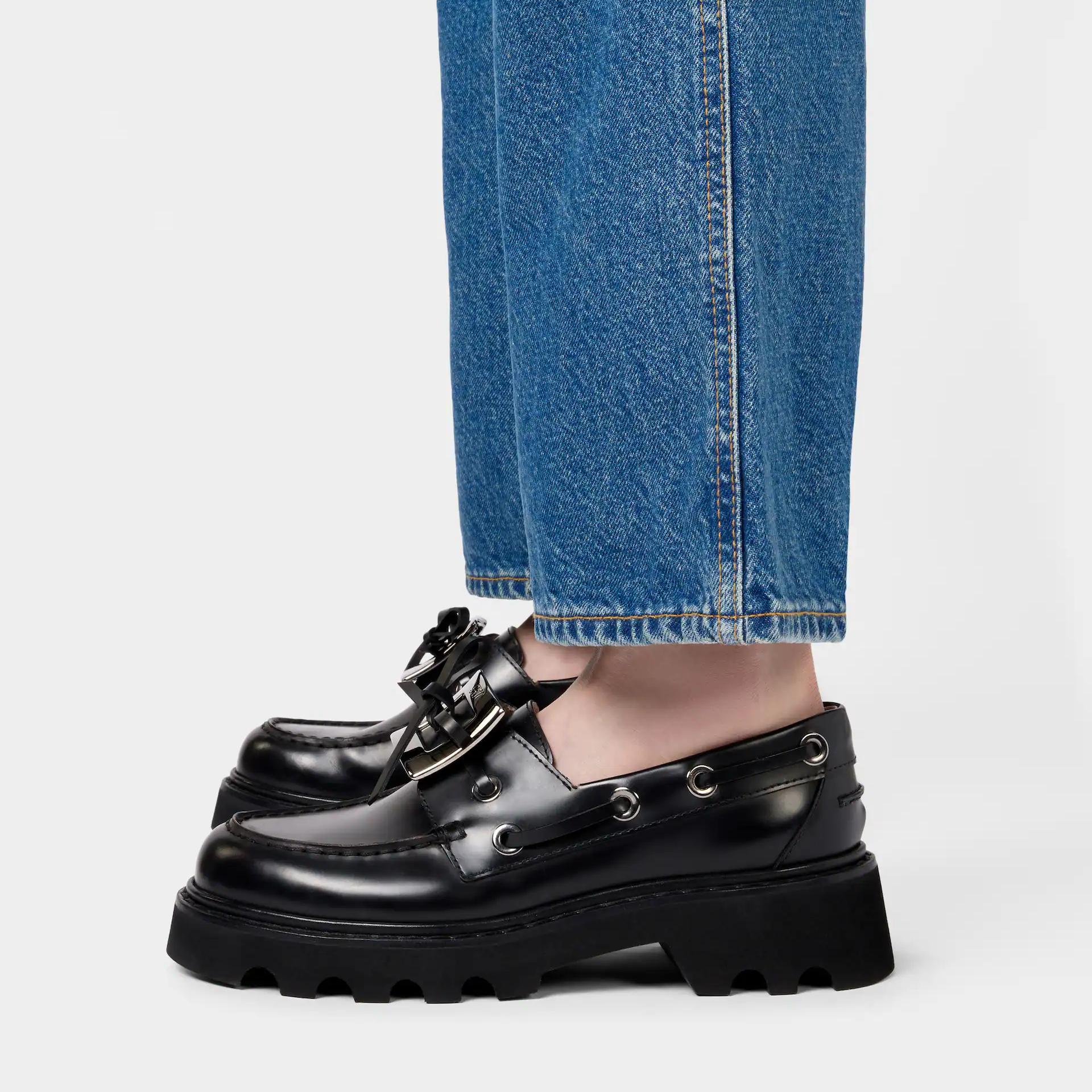 Roger Vivier Viv' Rangers Truck Boat Shoes Loafers In Black Leather With Metal Buckle (Heel Height 5cm)