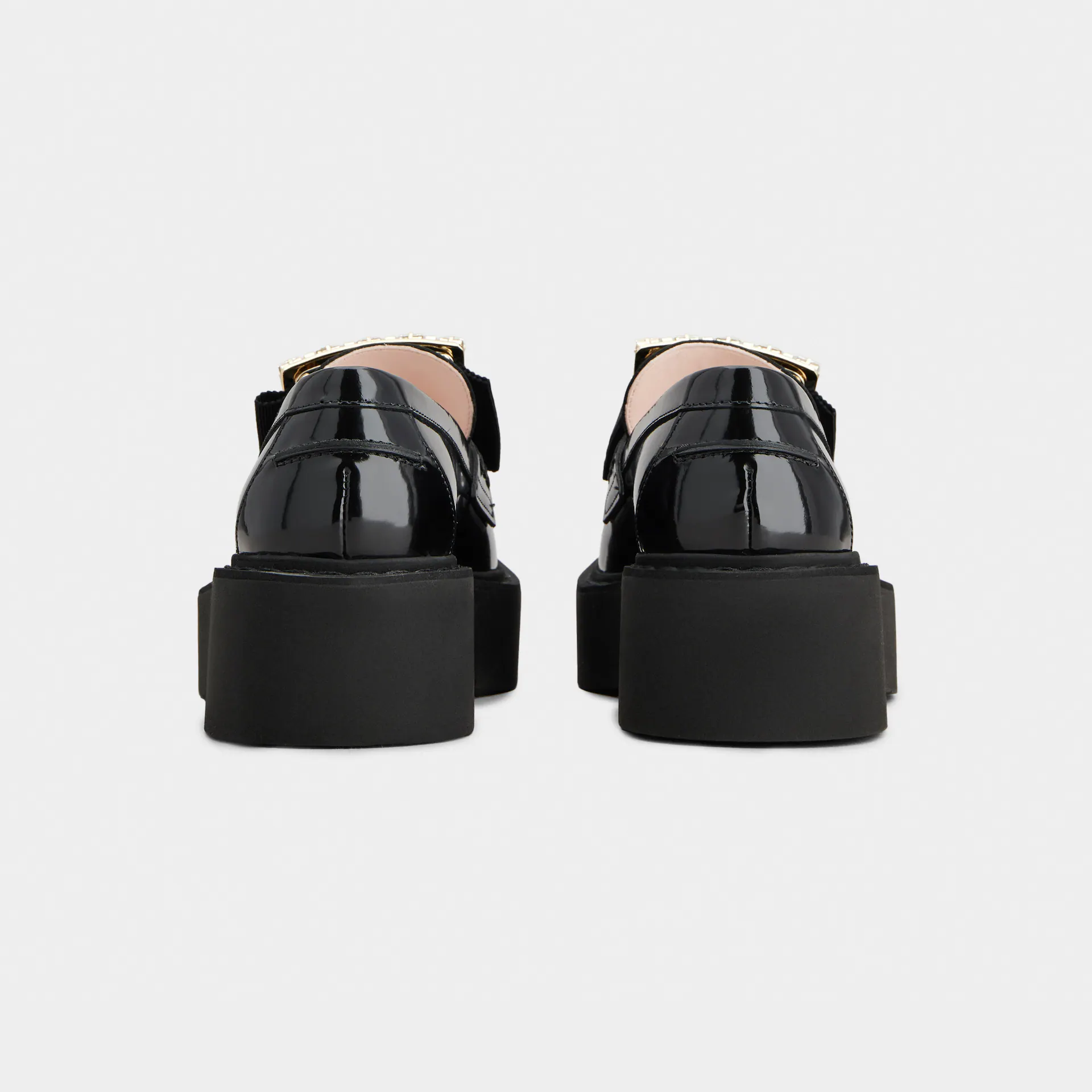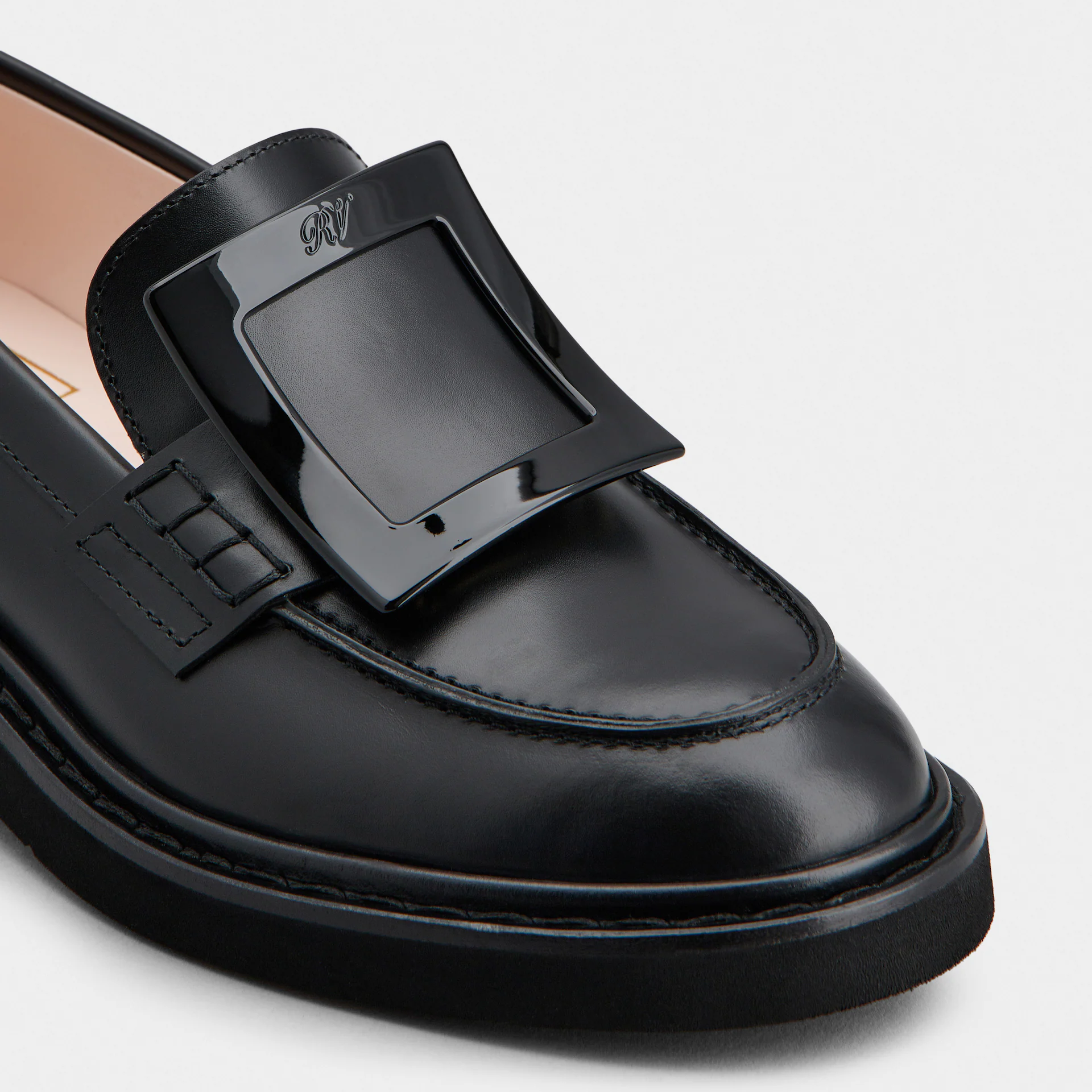 Roger Vivier Viv' Rangers Loafers In Black Leather With Lacquered Metal Buckle (Heel Height 2.5cm)