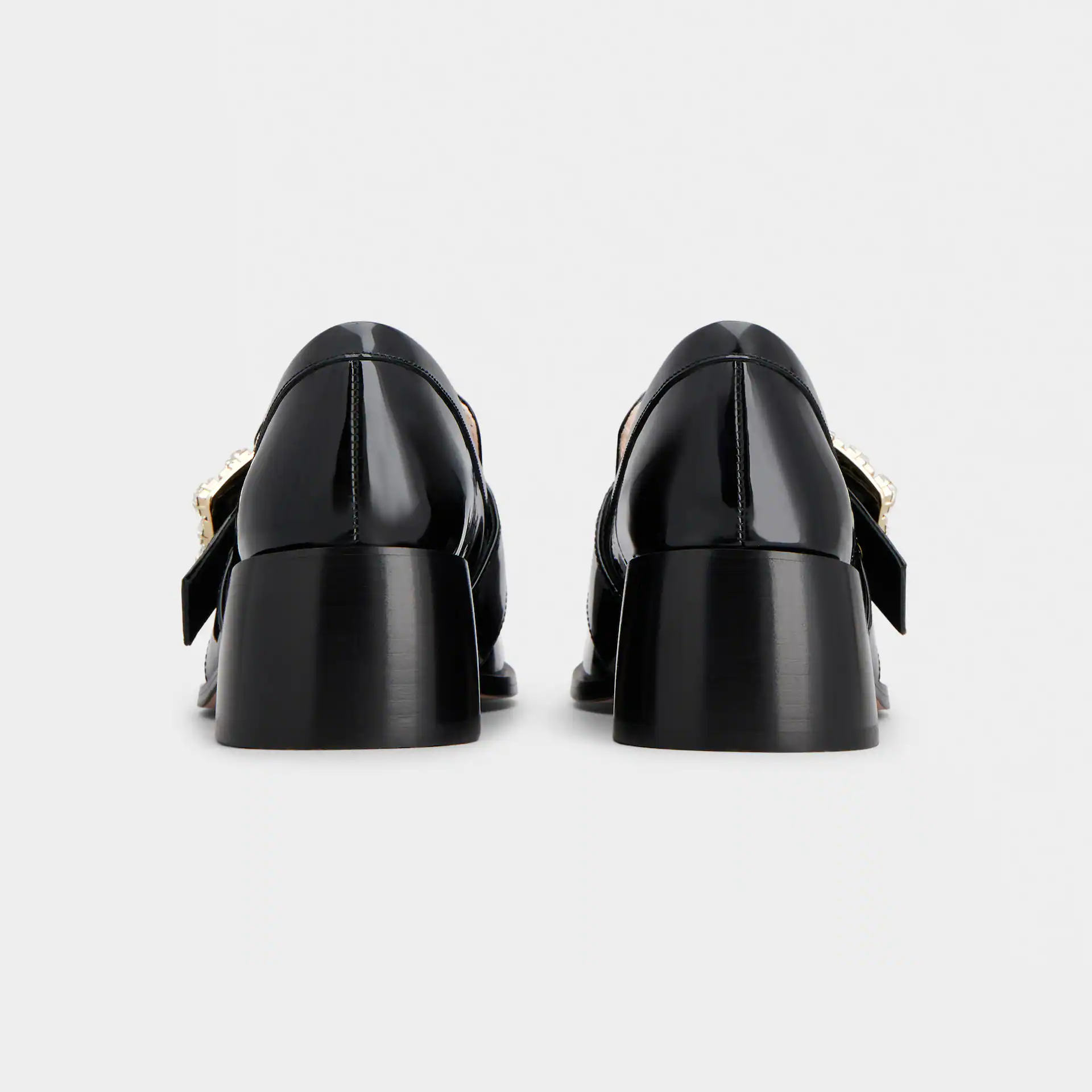 Roger Vivier Viv' Rangers Loafers In Black Patent Leather With Crystal Buckle (Heel Height 5.5cm)
