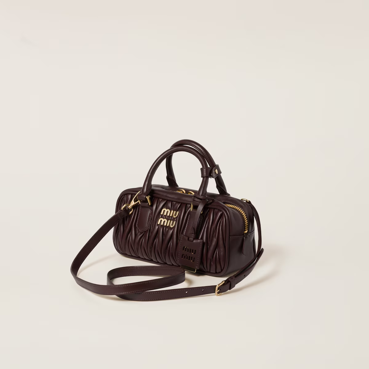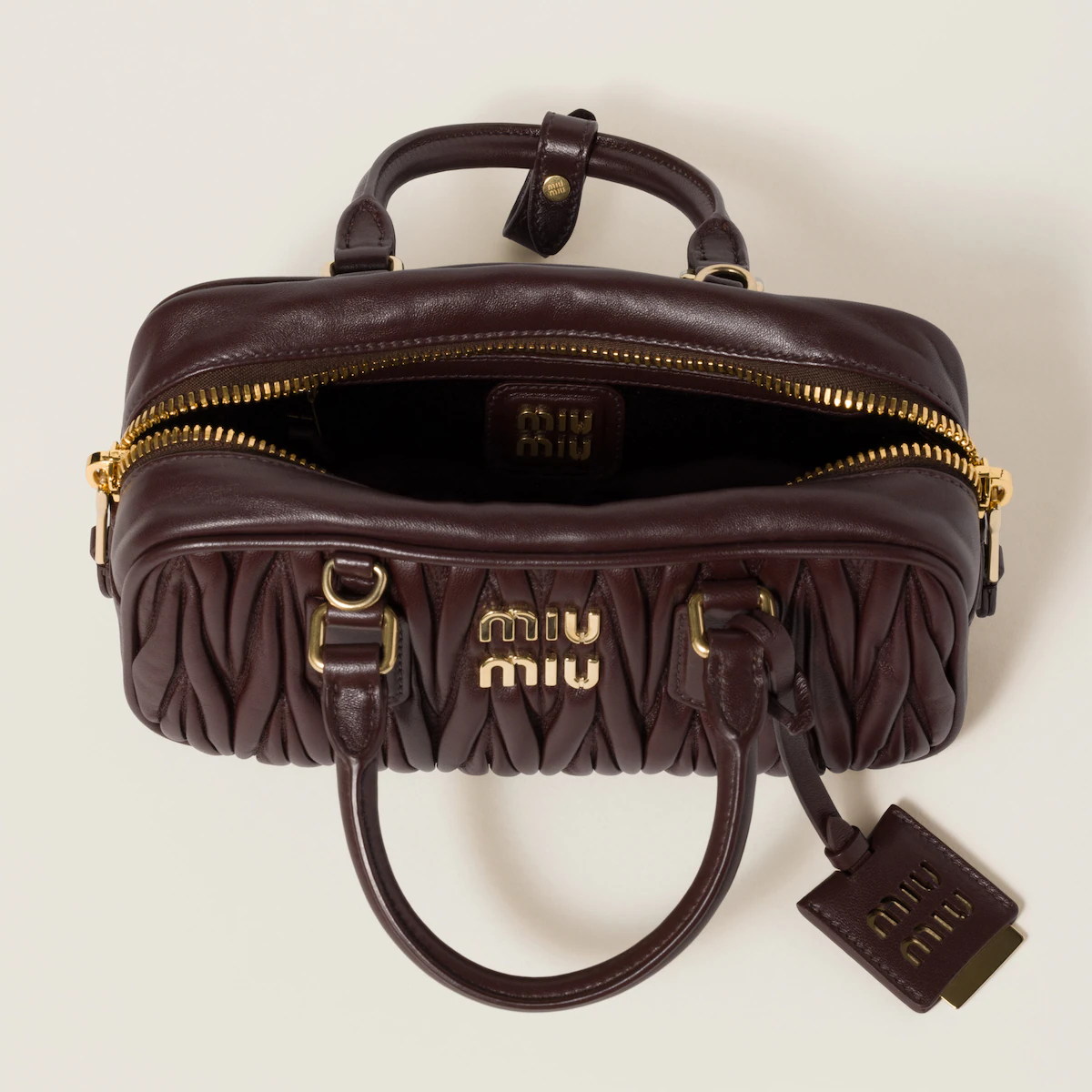 Miu Miu Arcadie matelassé Quilted Lambskin Leather Deep Brown Top-Handle Bags