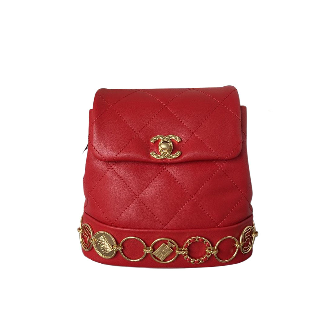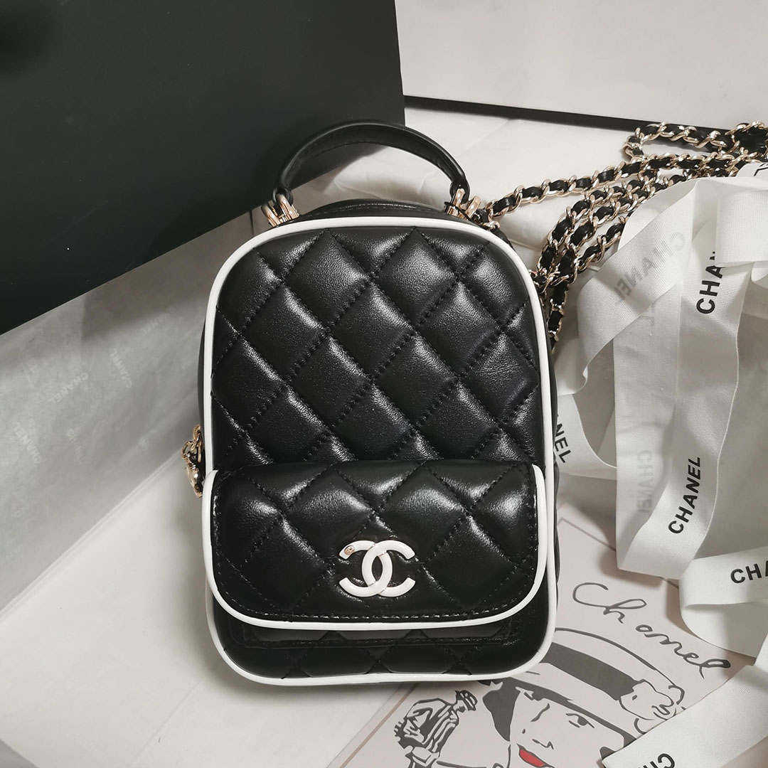 Chanel Black / White / Red / Apricot color Quilted Lambskin Leather Backpacks
