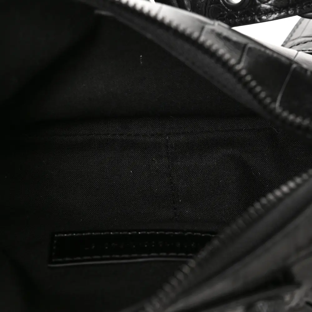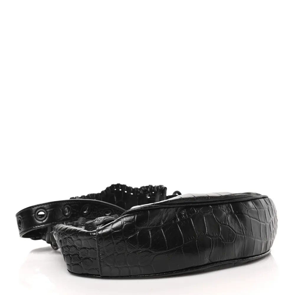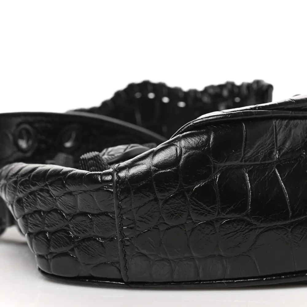 Balenciaga XS Monochrome Le Cagole Shoulder Bag Black Crocodile Embossed Extra Supple Calfskin Leather Black Hardware