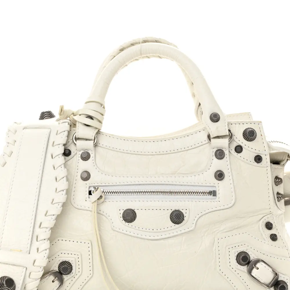 Balenciaga XS Neo Cagole Handbag Optic White Agneau Arena Leather Silver Hardware
