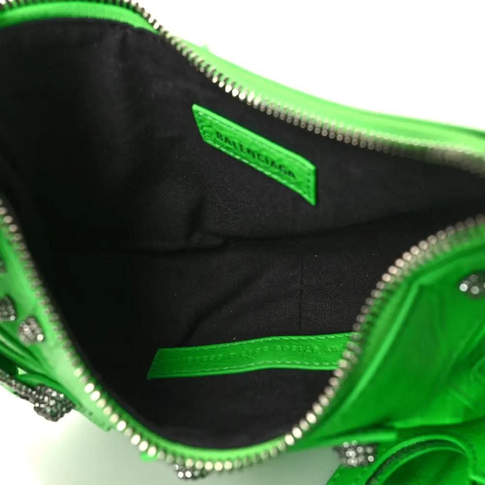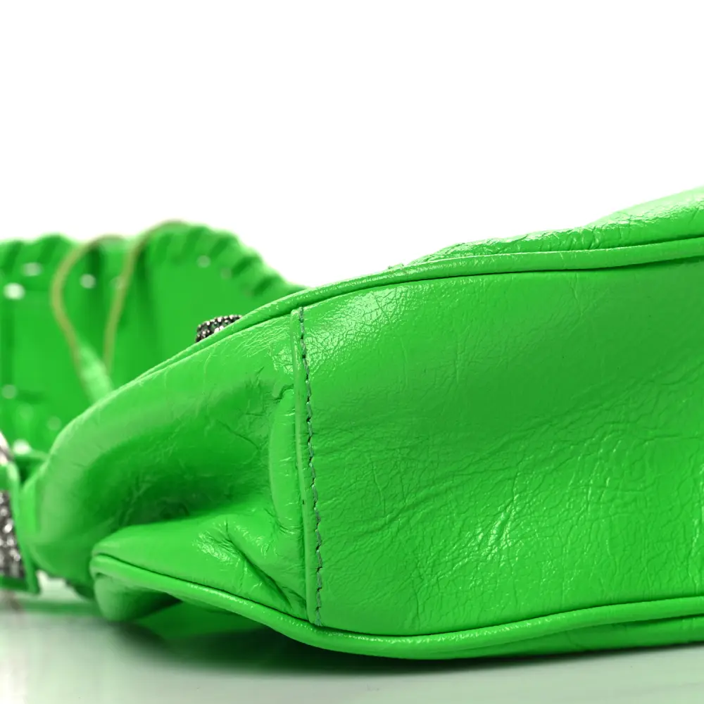 Balenciaga XS Crystal Le Cagole Shoulder Bag Fluo Green Agneau Arena Leather Silver Hardware