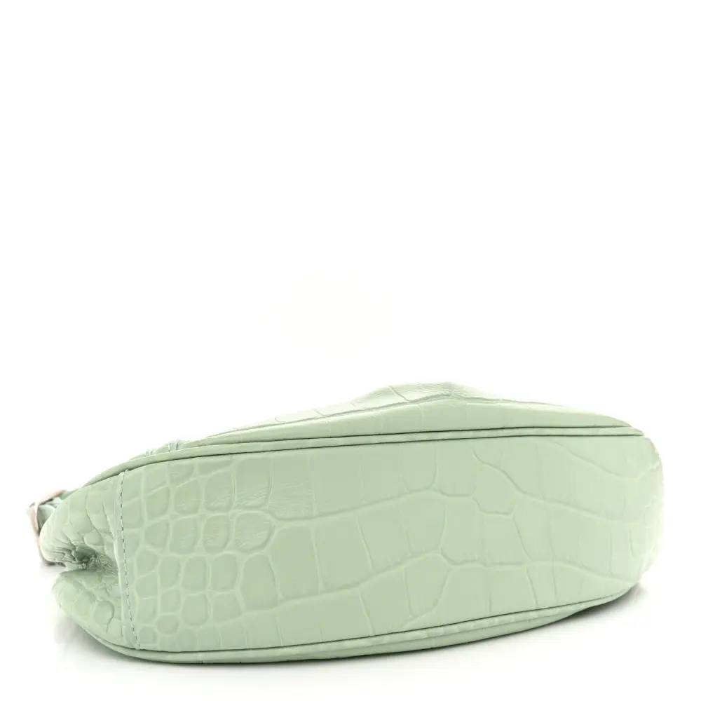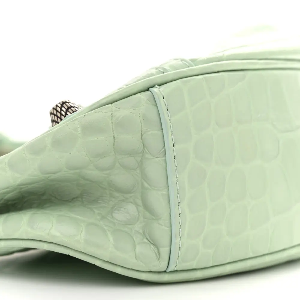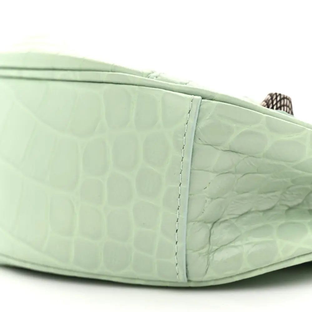Balenciaga XS Le Cagole Shoulder Bag Light Green Crocodile Embossed Extra Supple Calfskin Leather Black Hardware