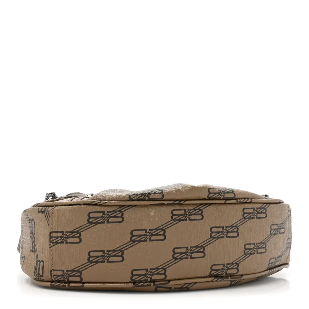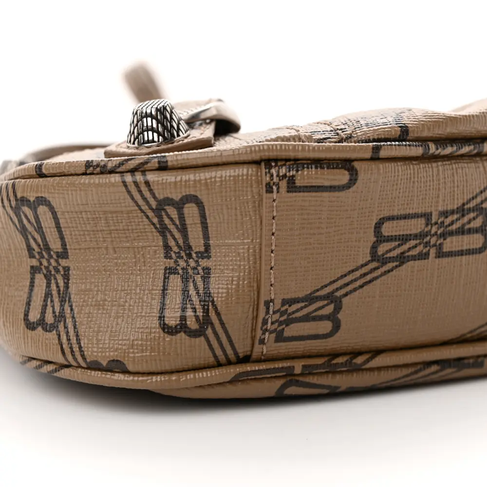 Balenciaga XS Le Cagole Shoulder Bag Beige/Brown Coated Canvas BB Monogram Silver Hardware