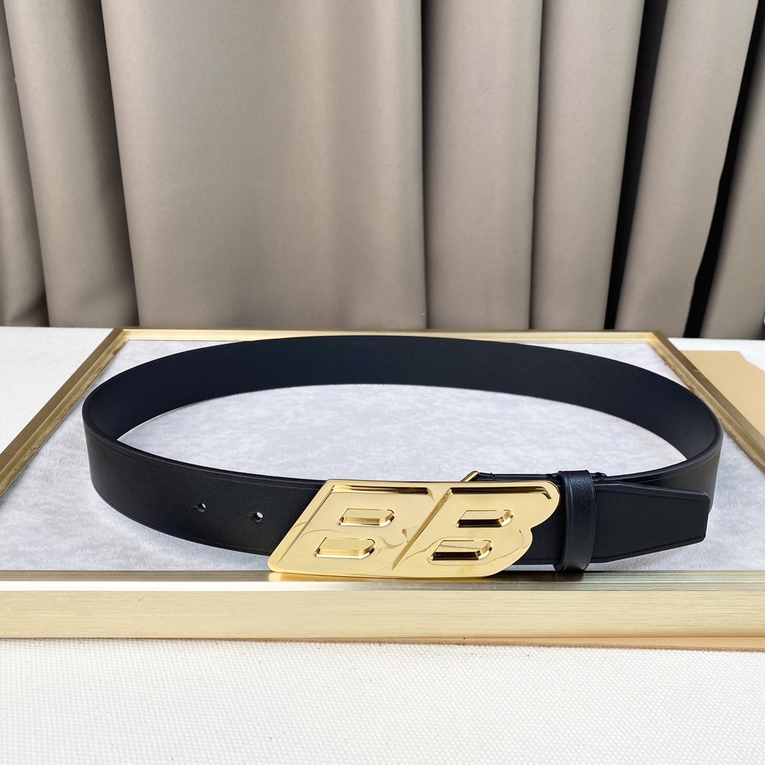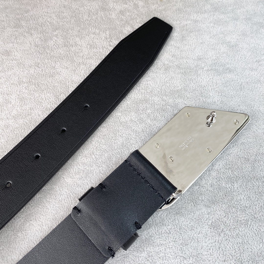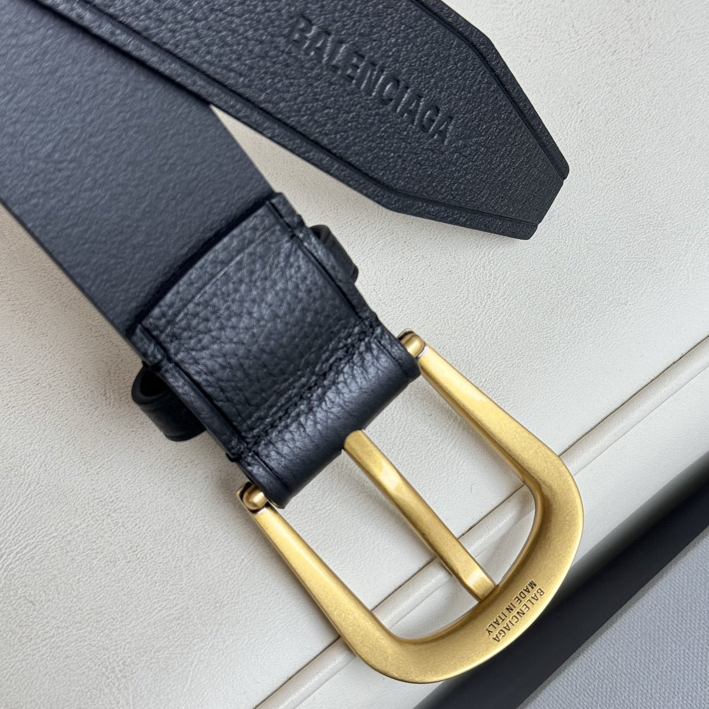 Balenciaga Men's Black Suit Belt In Black Grained Calfskin With Gold/Silver Hardware 35mm