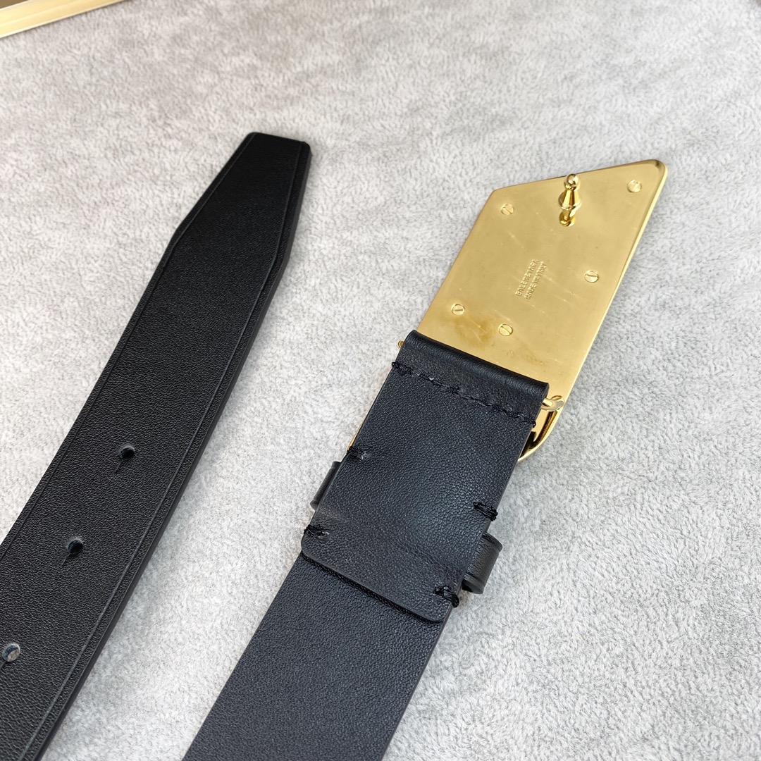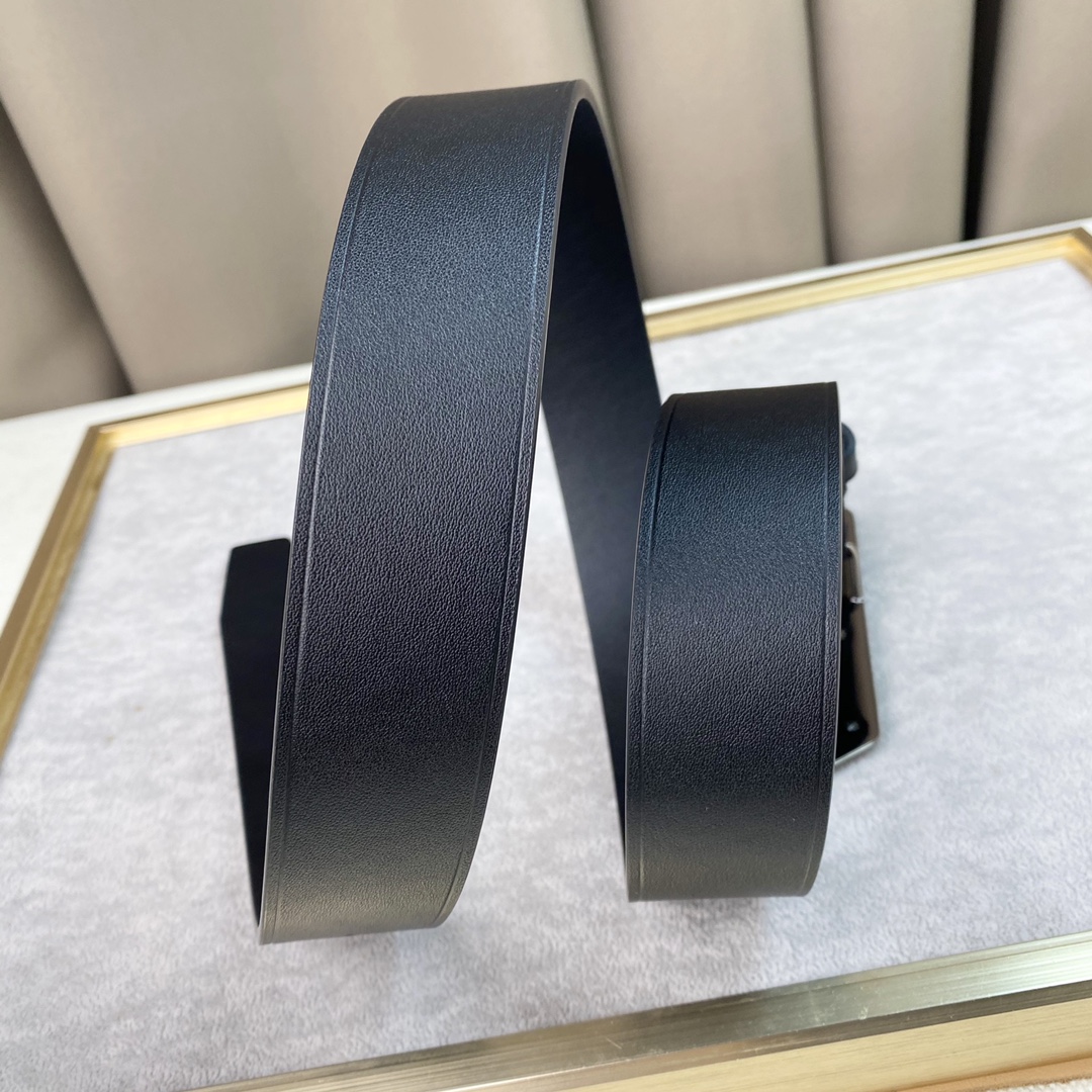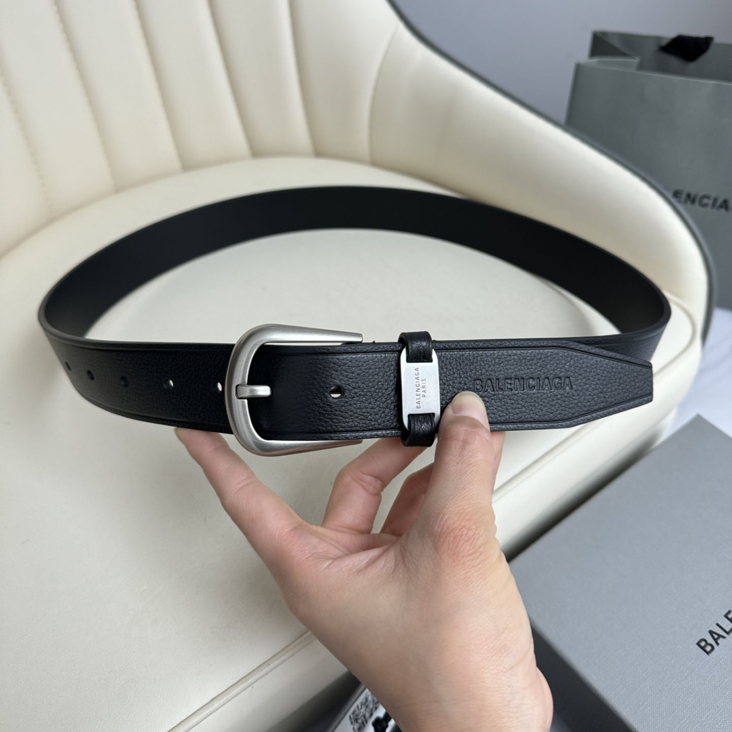 Balenciaga Men's Black Suit Belt In Black Grained Calfskin With Gold/Silver Hardware 35mm