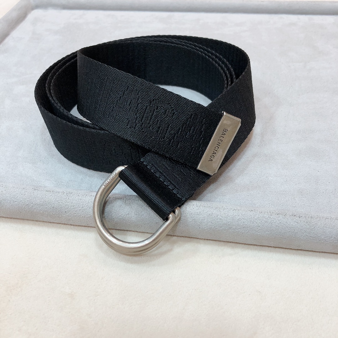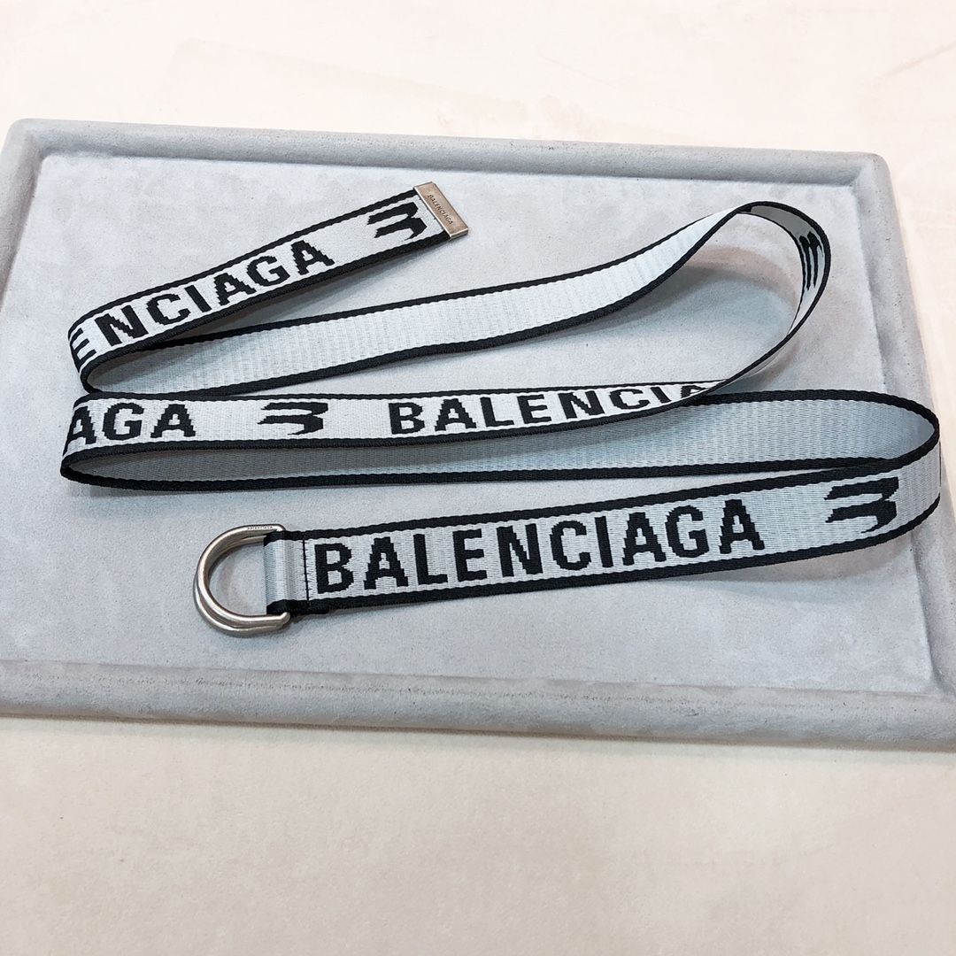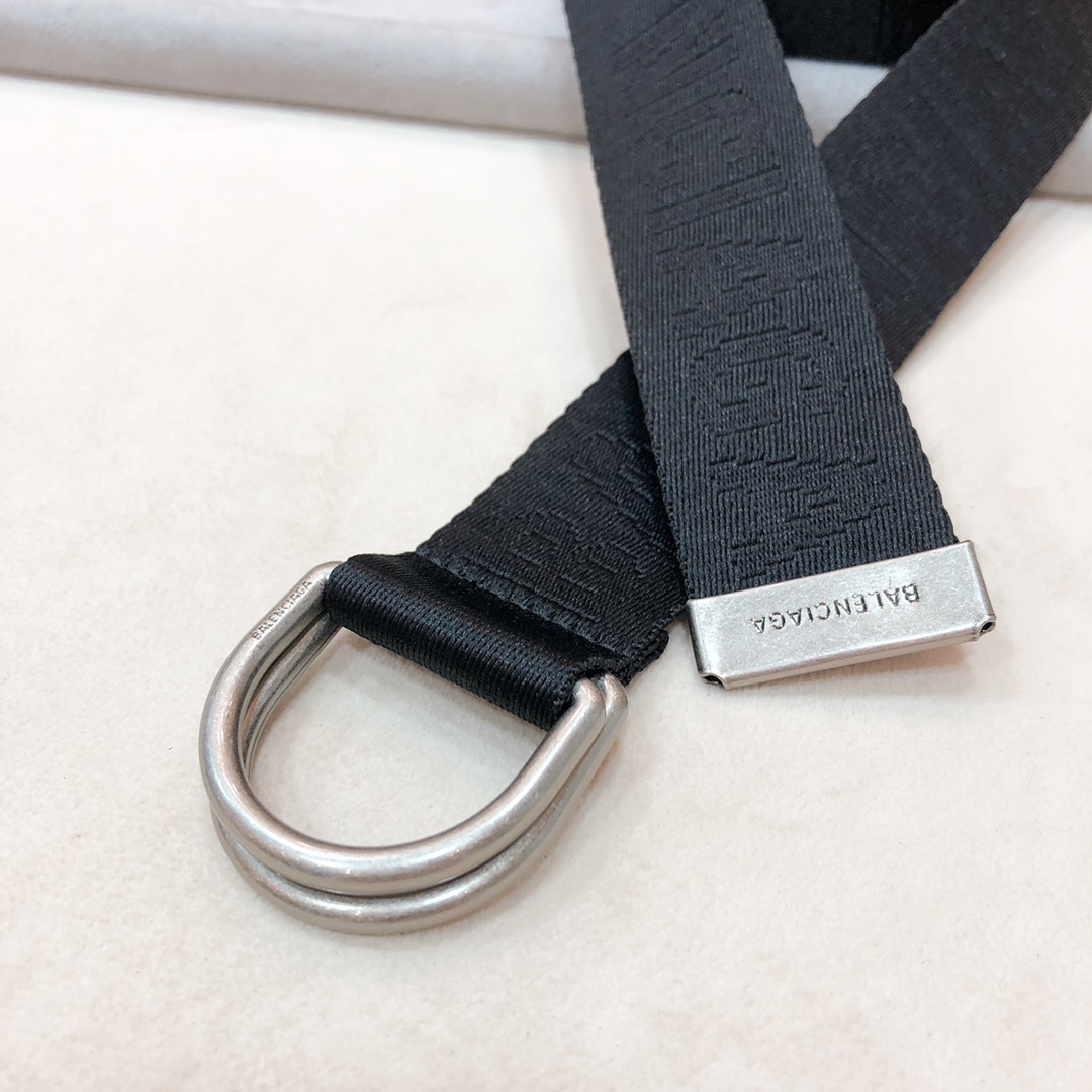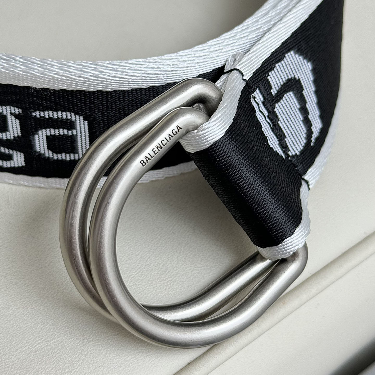 Balenciaga Men's D Ring Adjustable Belt In Balenciaga Black/White/Grey Webbing With Silver Hardware 40mm