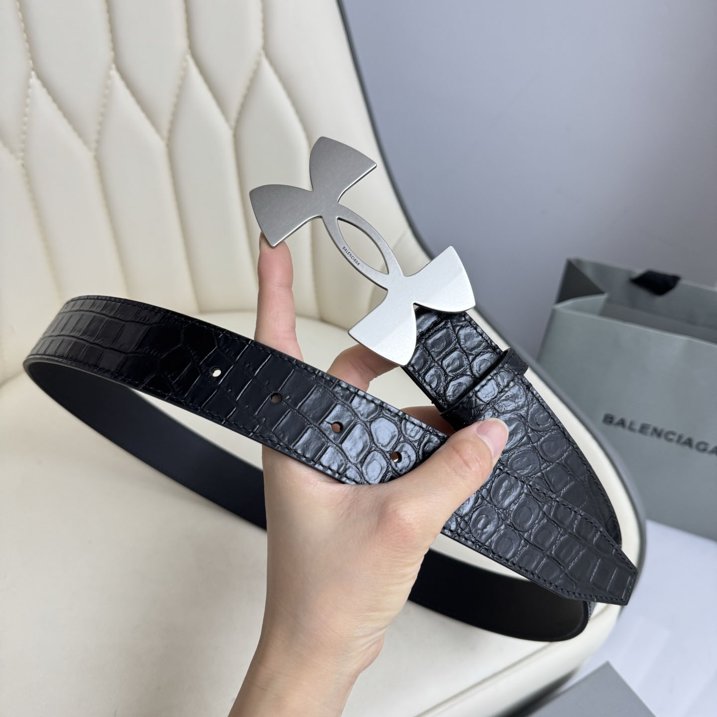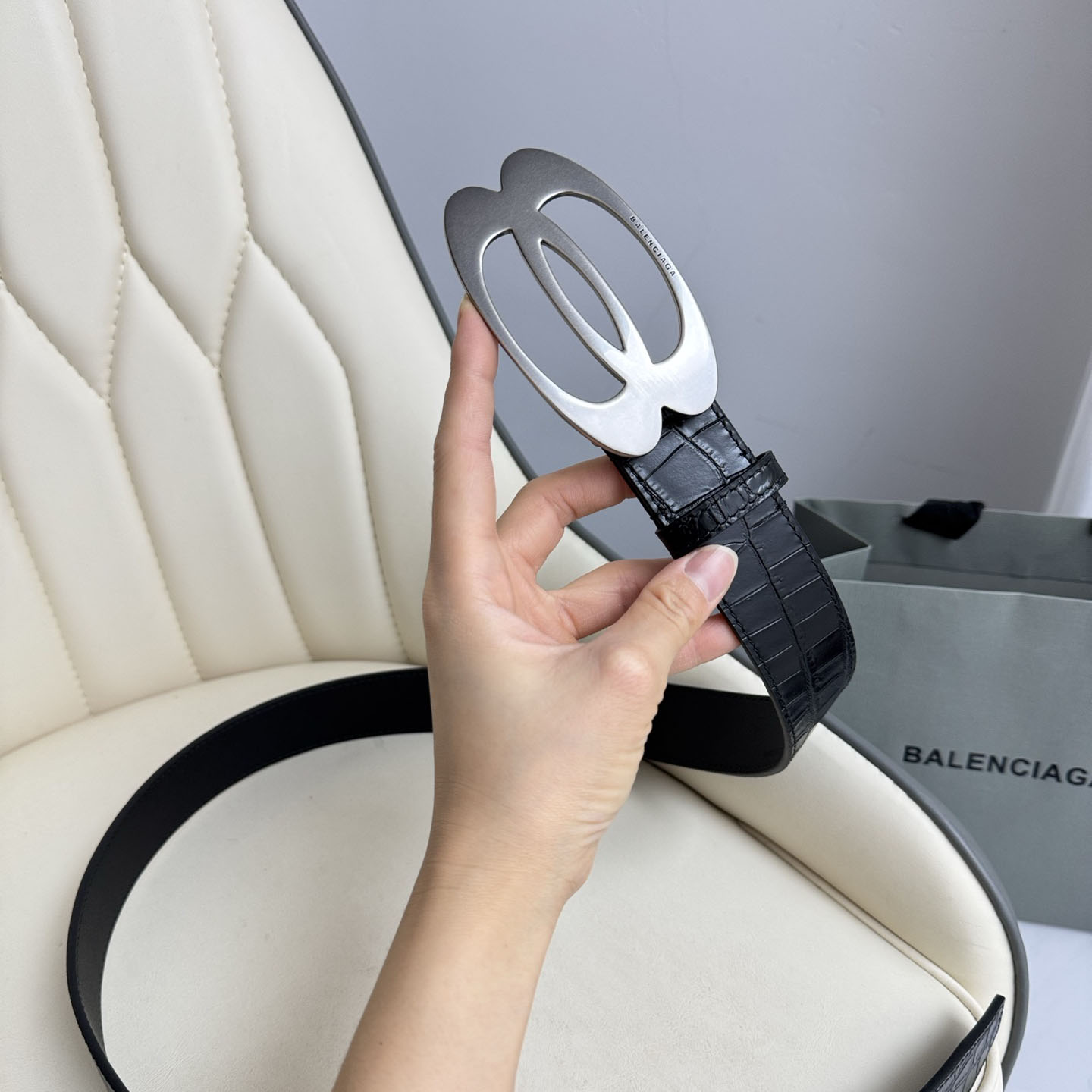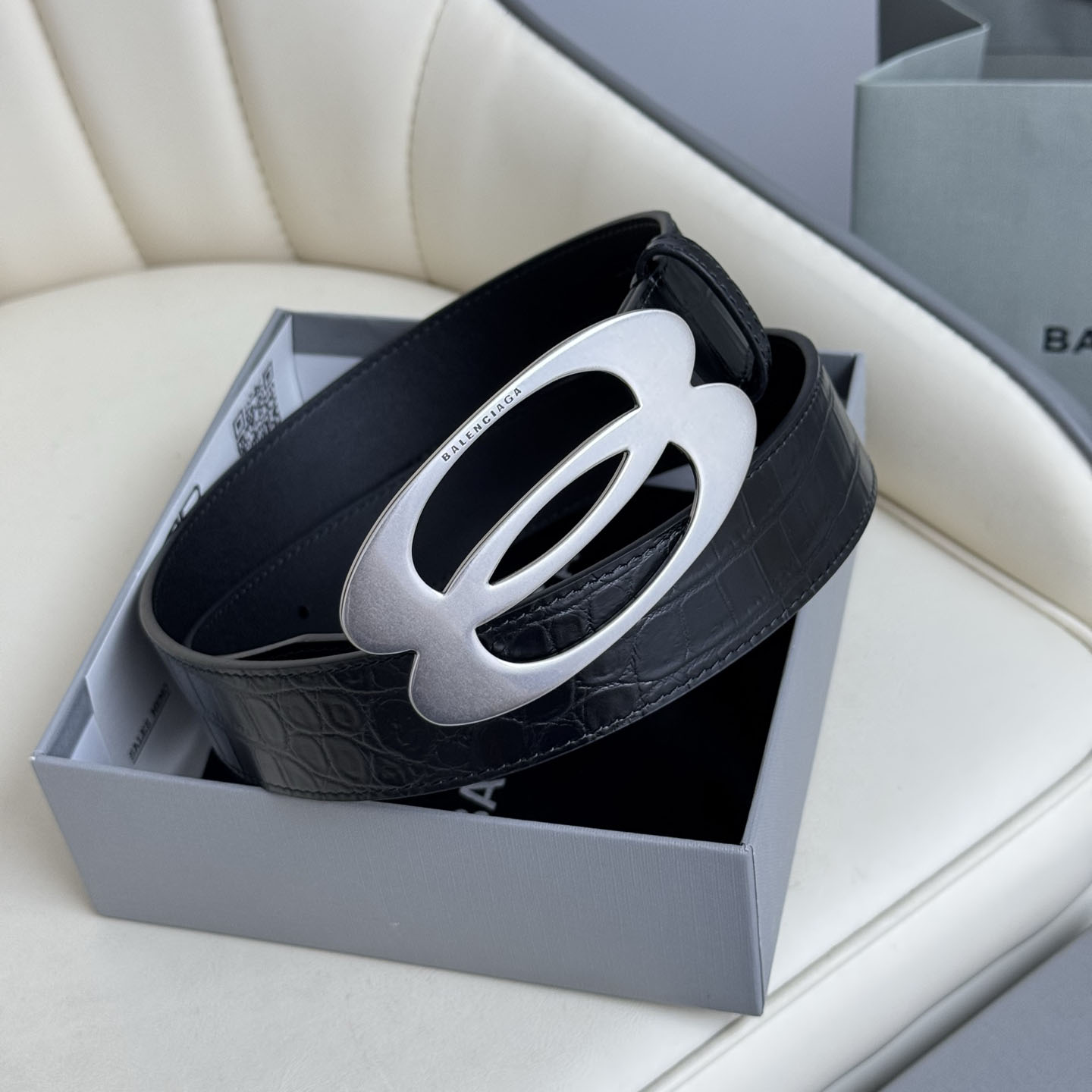 Balenciaga Men's New BB Palladium Buckle Belt In Black Embossed Crocodile Calfskin With Silver/Gold/Matte Black Hardware 35mm