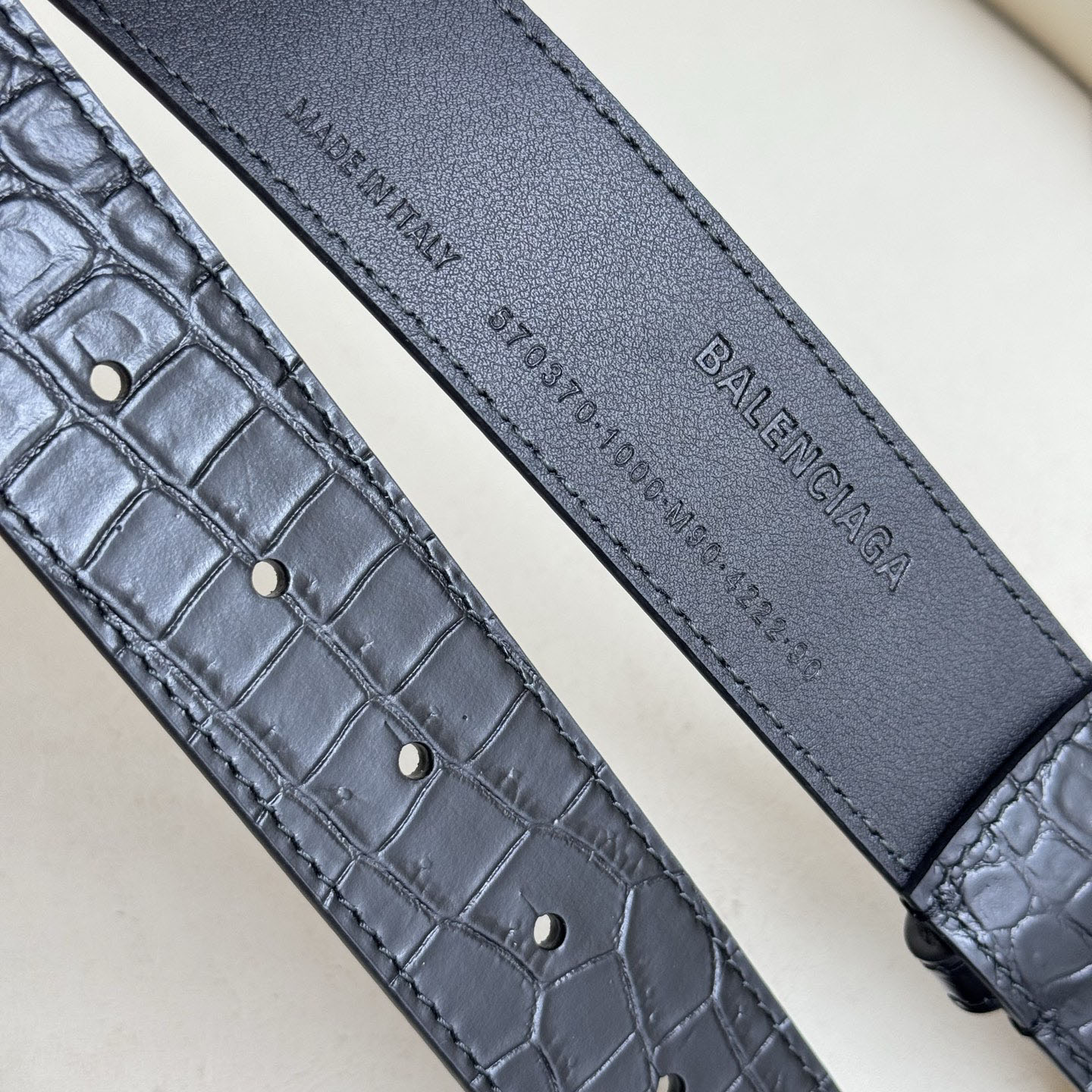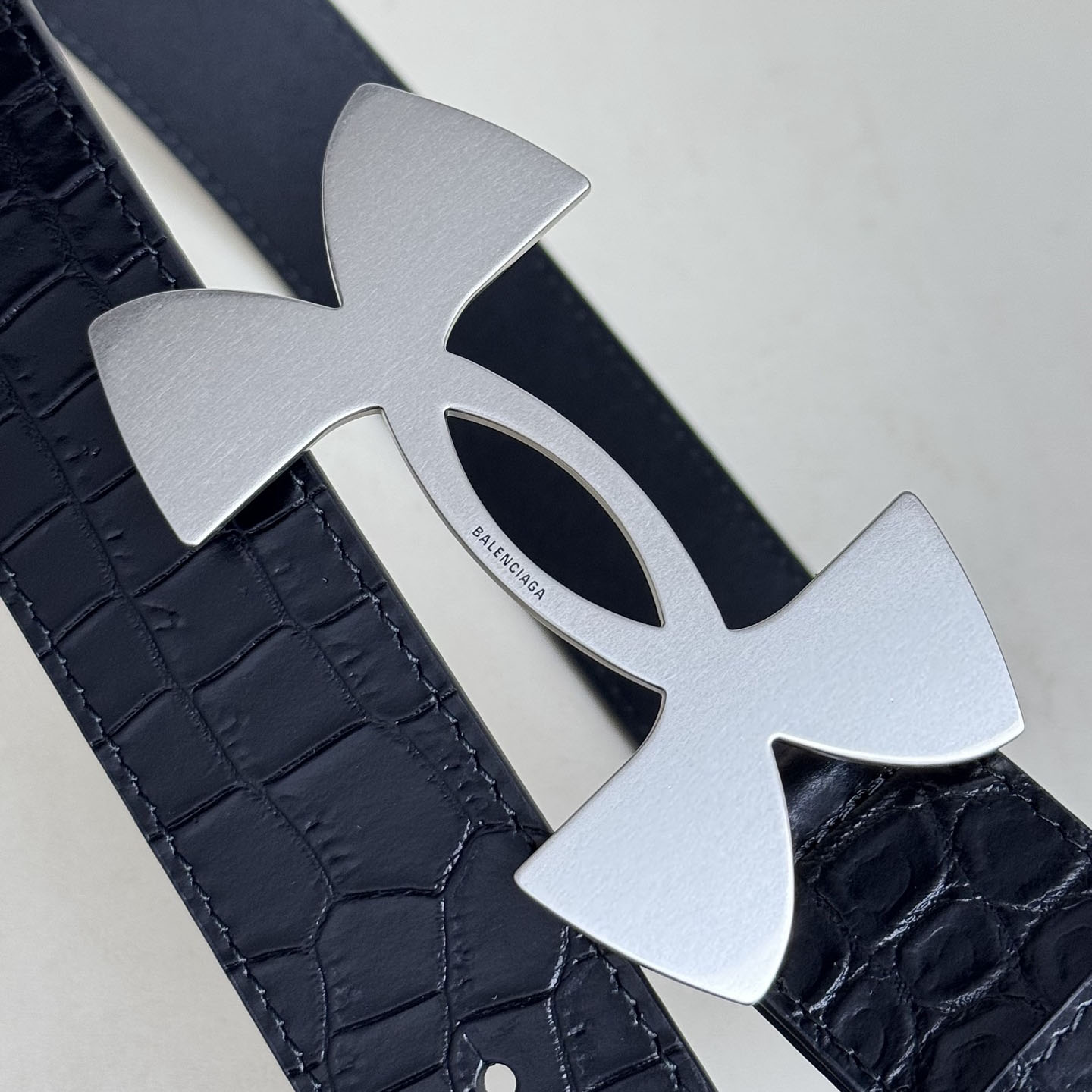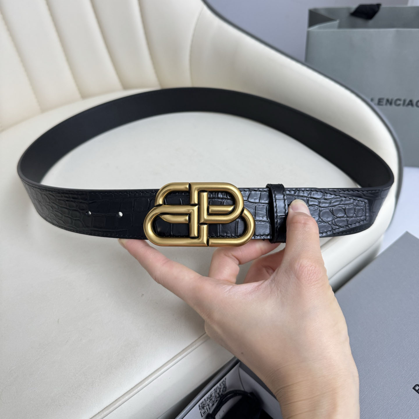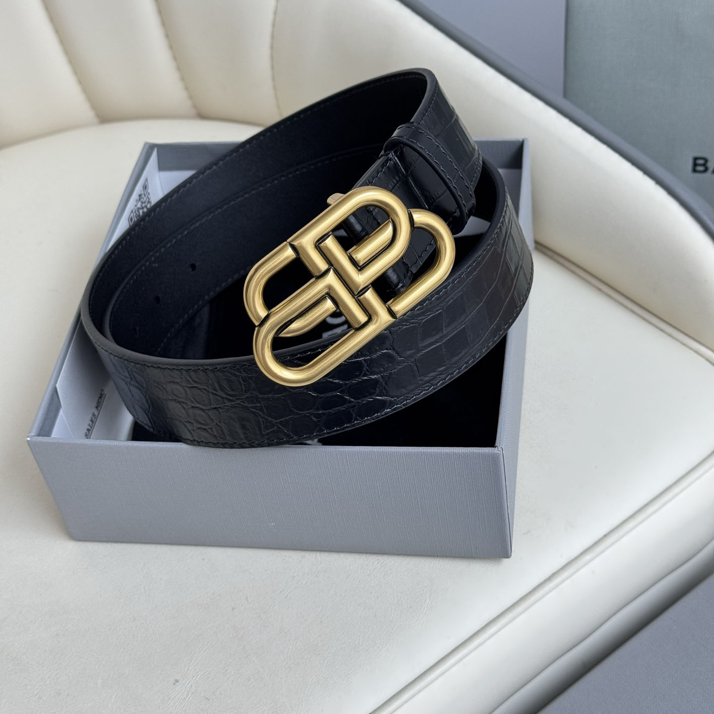 Balenciaga Men's New BB Palladium Buckle Belt In Black Embossed Crocodile Calfskin With Silver/Gold/Matte Black Hardware 35mm