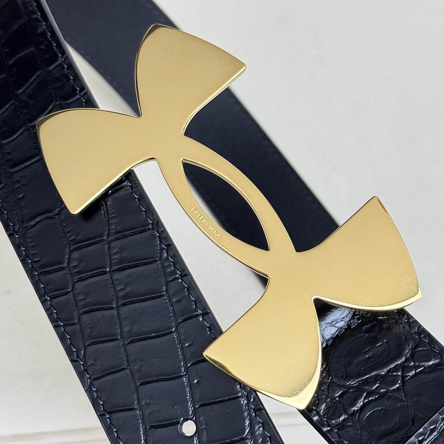Balenciaga Men's Unity Belt In Black Embossed Crocodile Calfskin With Gold/Silver Hardware 35mm