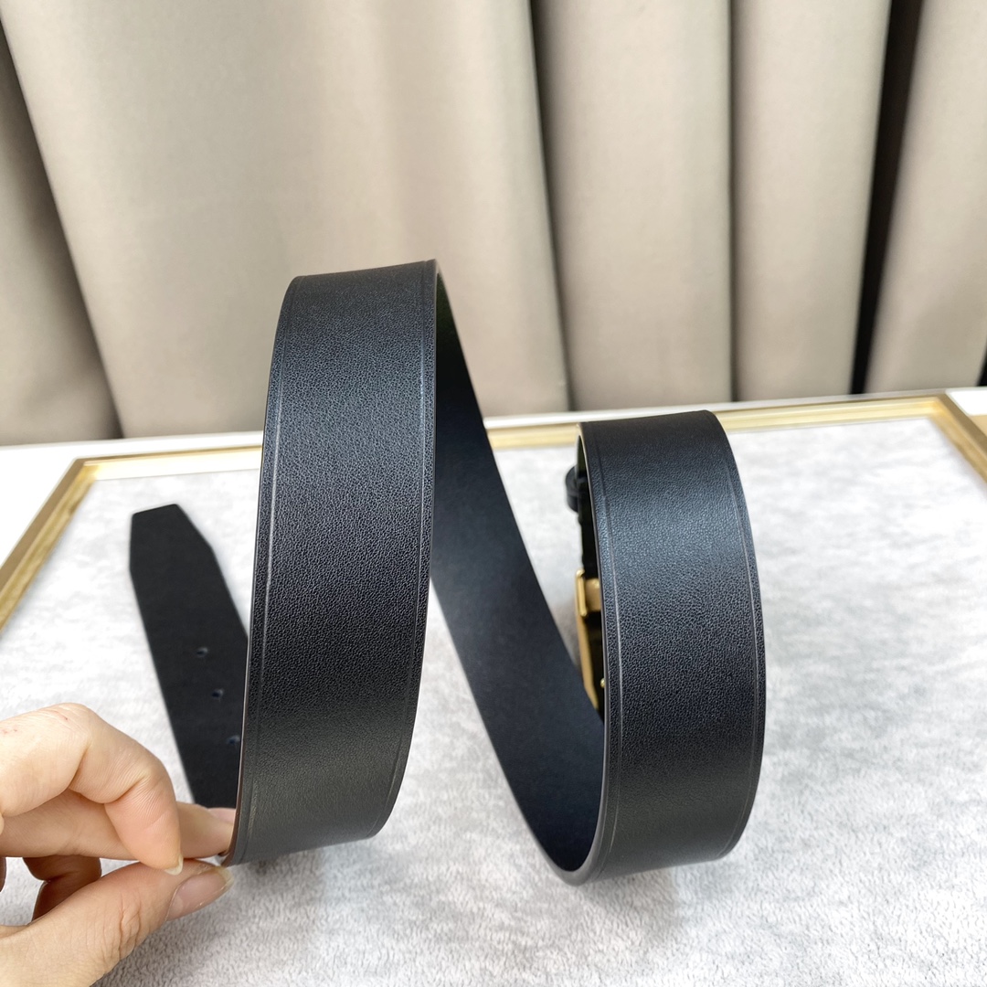 Balenciaga Men's Monaco Belt In Black Calfskin With Gold Hardware 30mm
