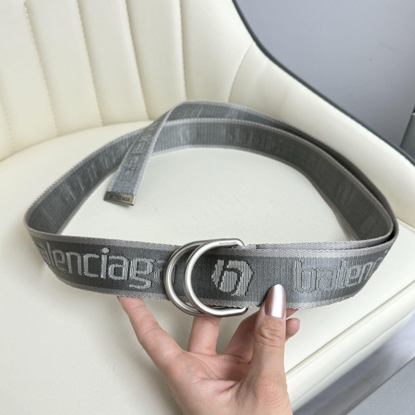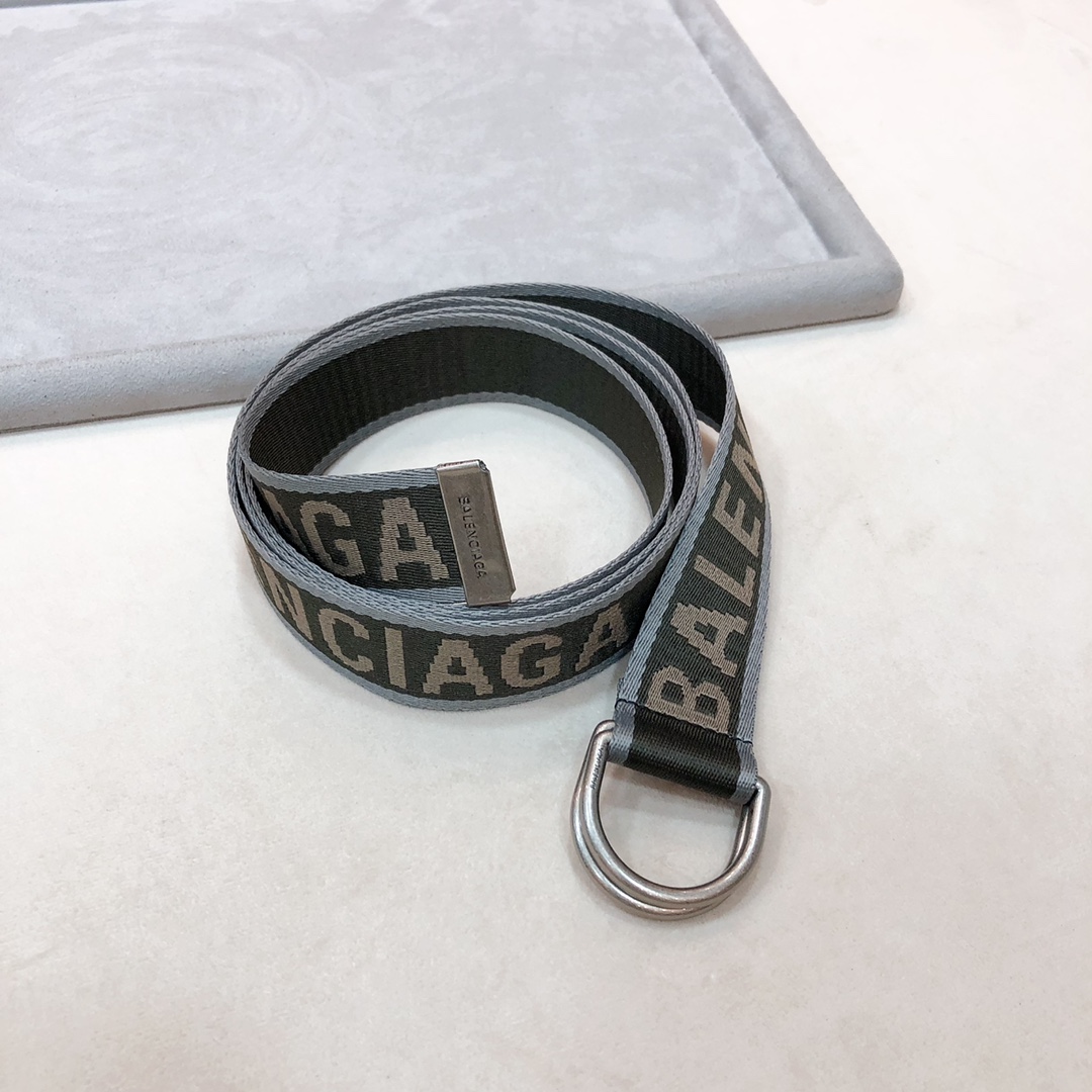 Balenciaga Men's D Ring Belt In Balenciaga Grey/Green Webbing With Silver Hardware 40mm