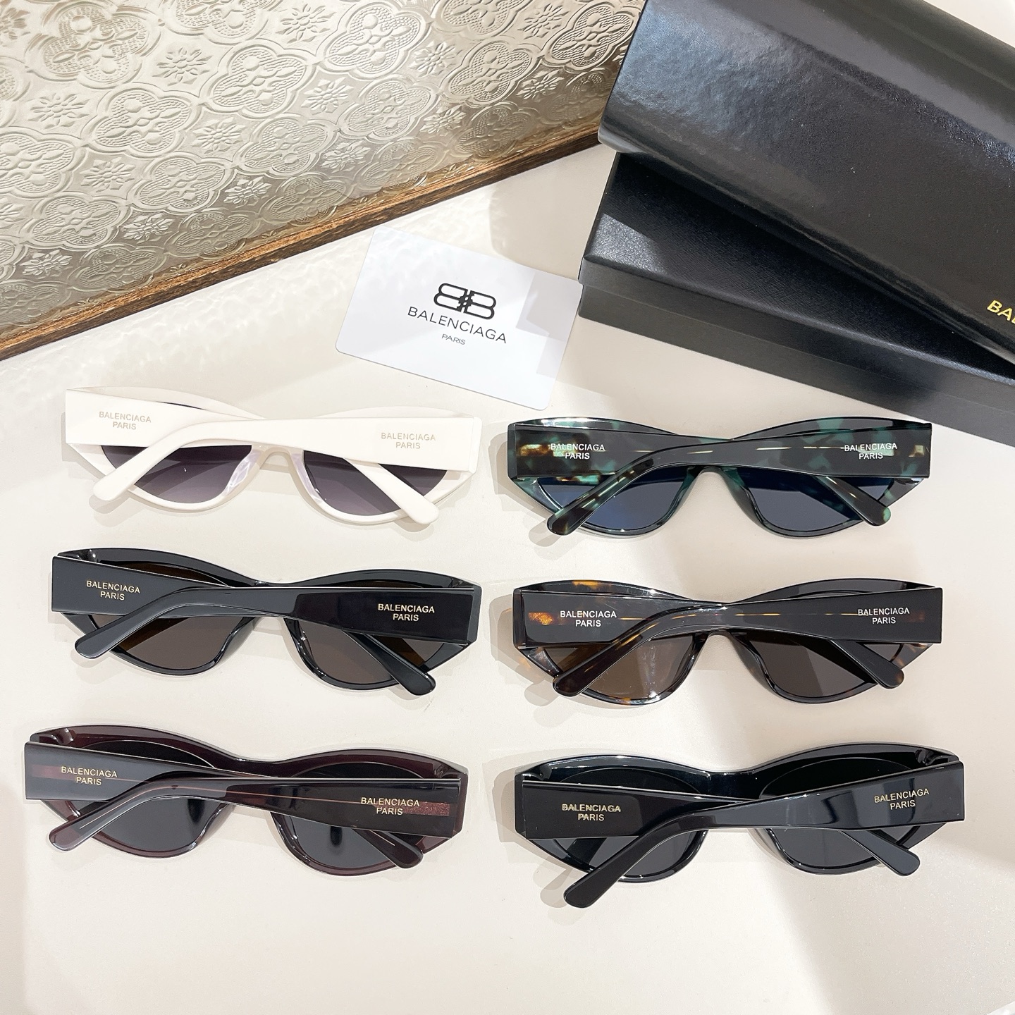 Balenciaga Cat Eye glasses white/green leopard/black leopard/coffee/black color Size 60口17-145