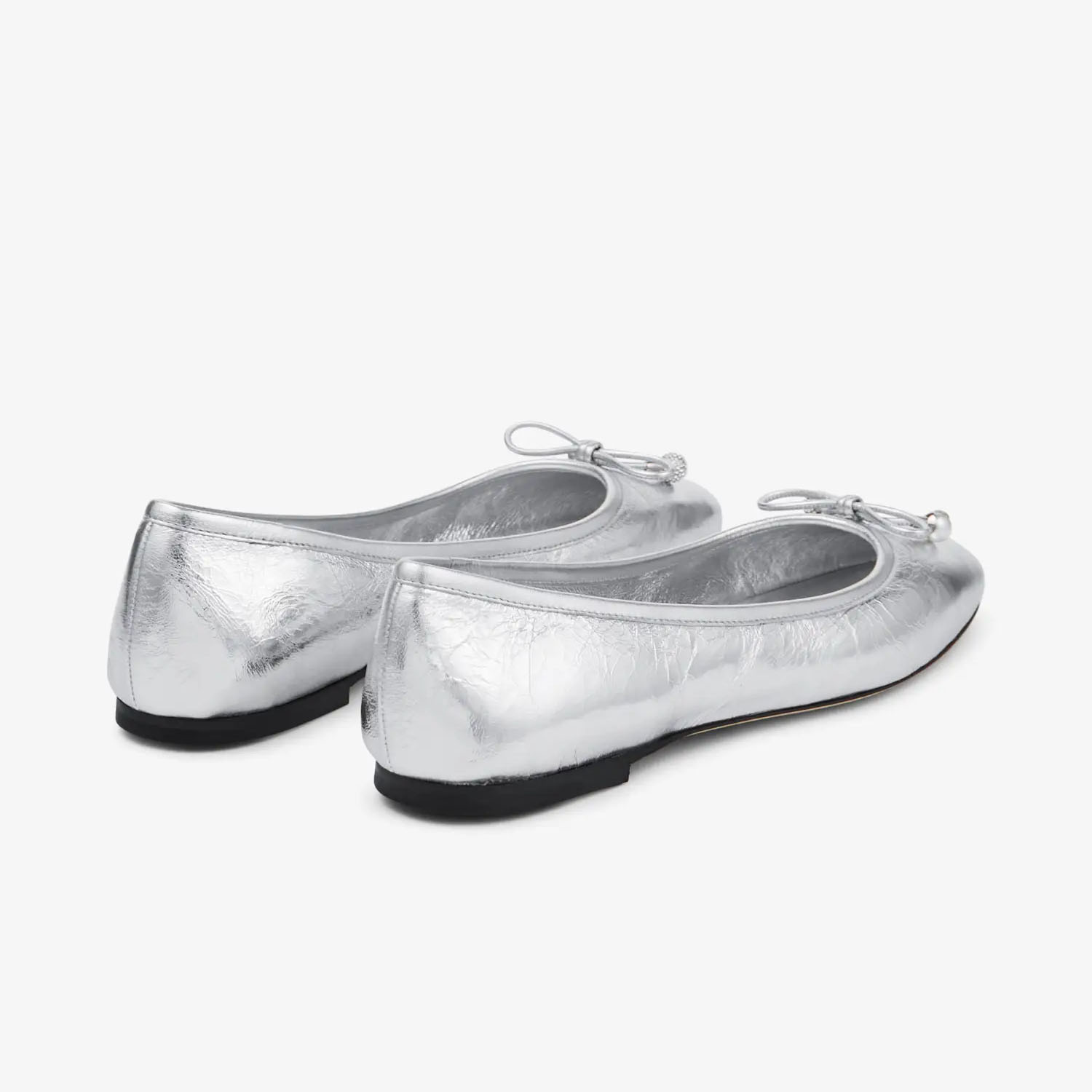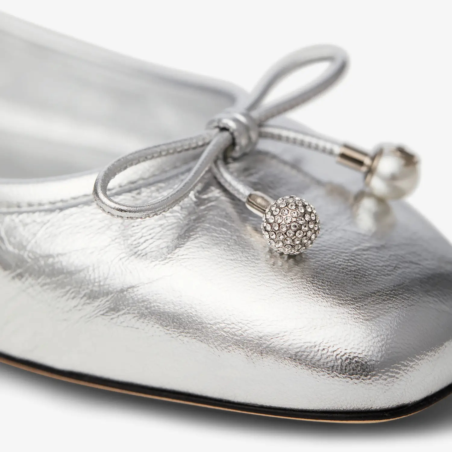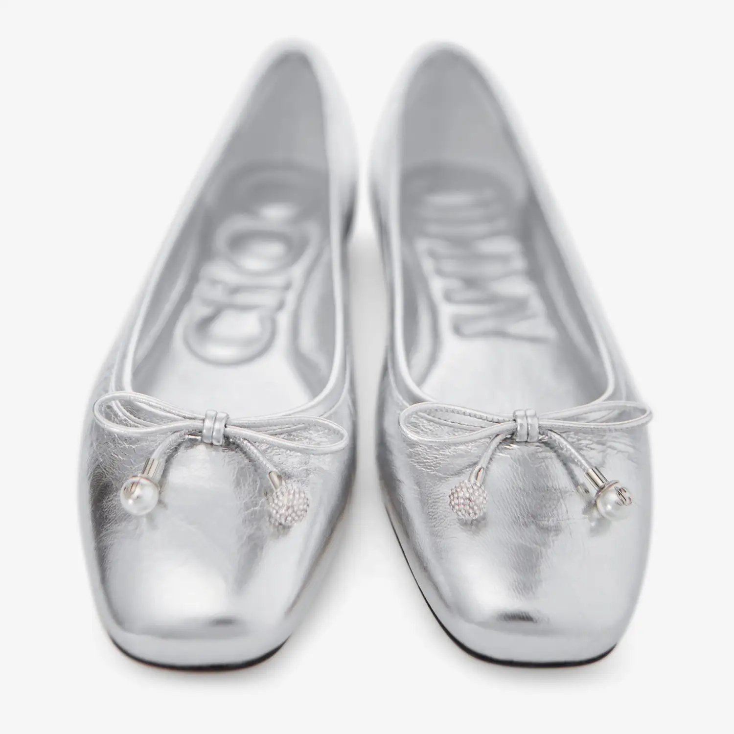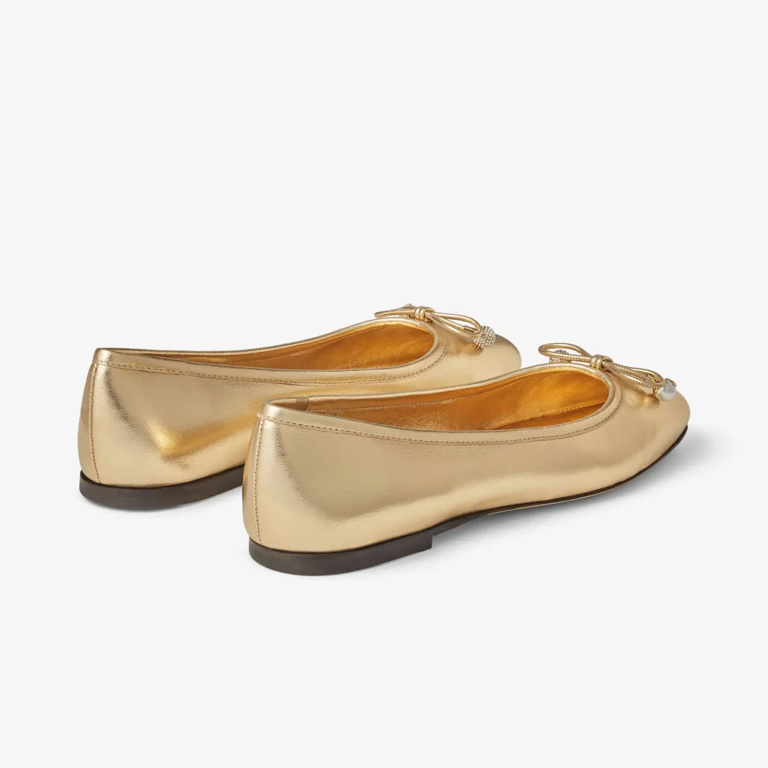 JIMMY CHOO Pearl embellish gold metallic texture Napa sheep-leather flats