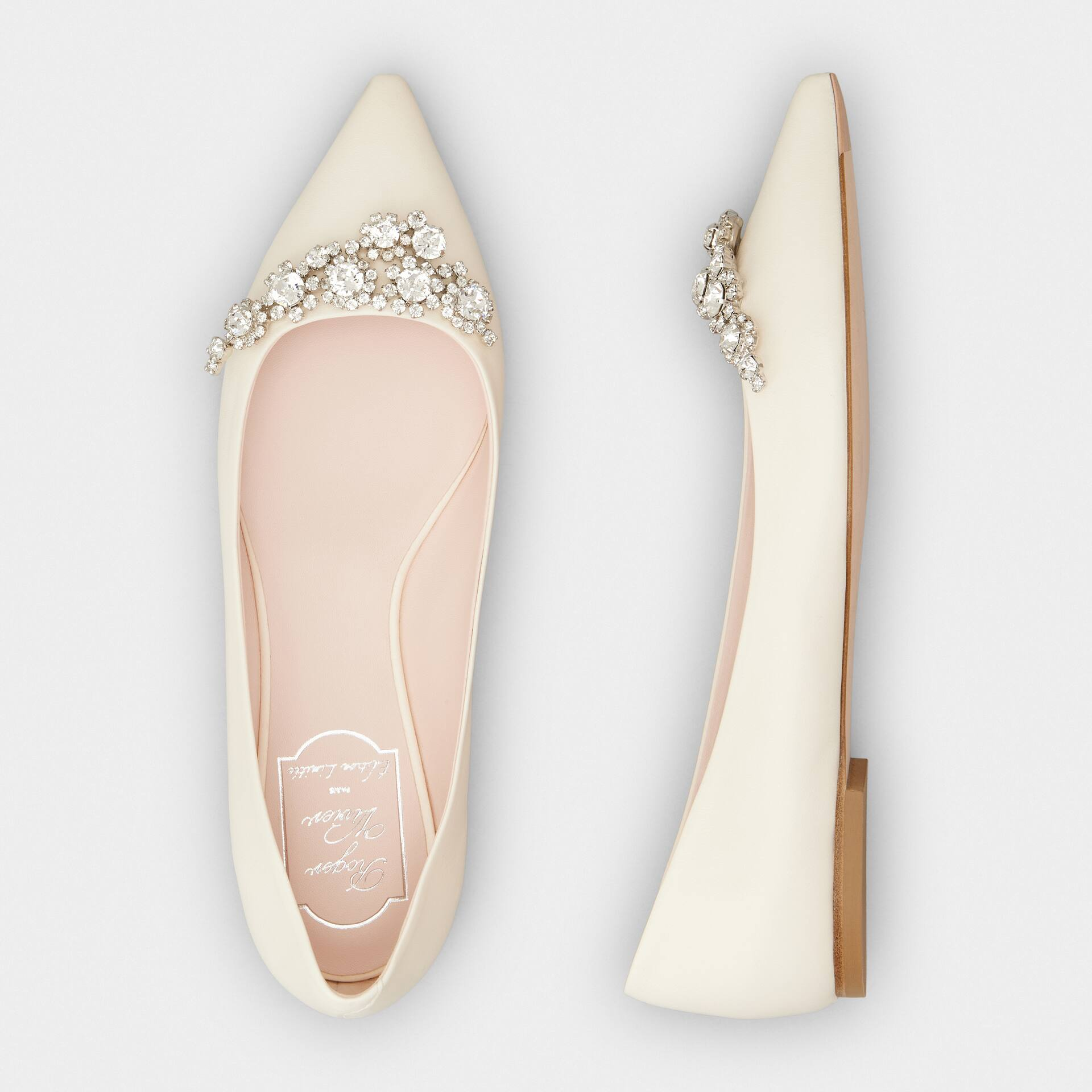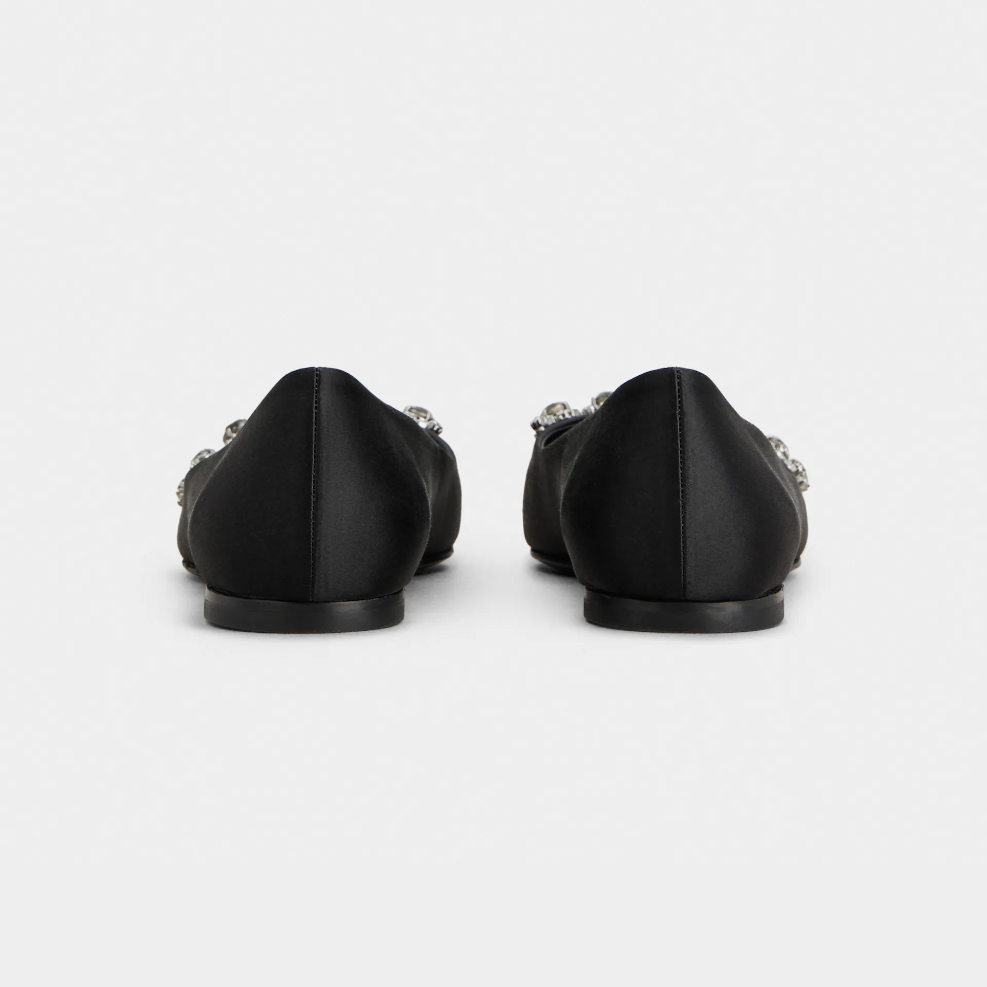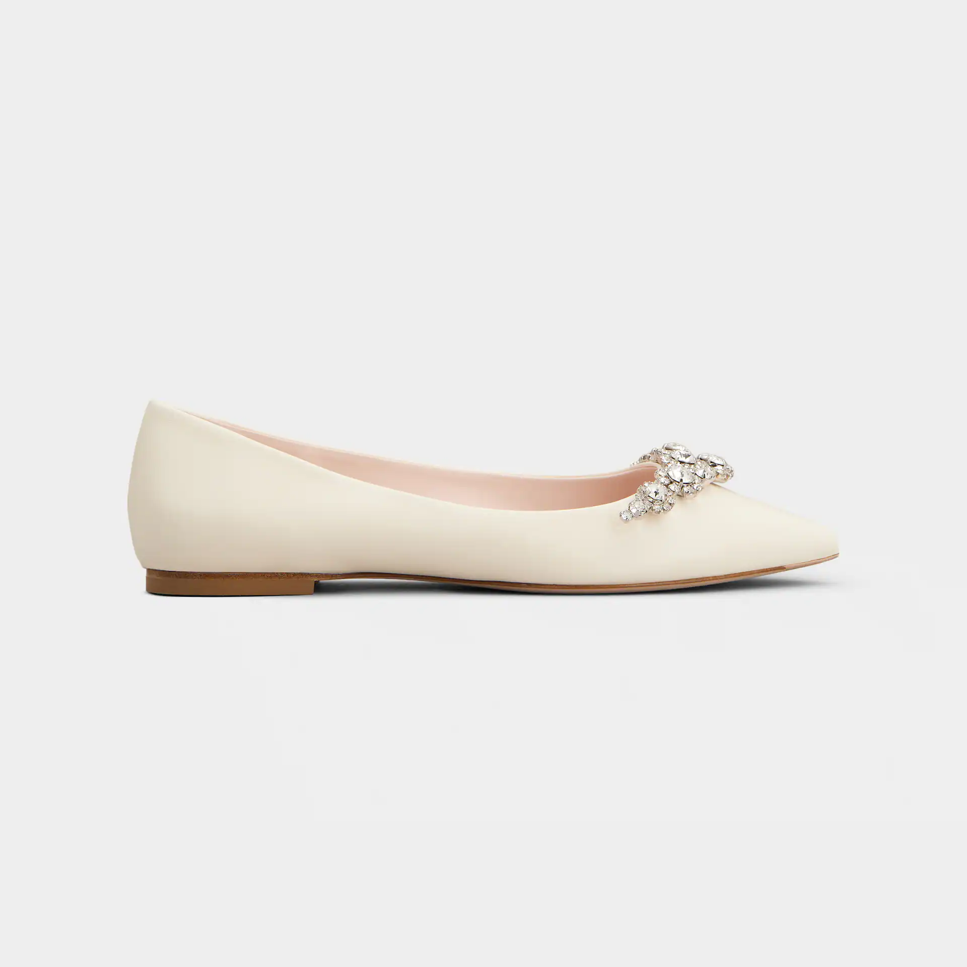 Roger Vivier Efflorescence Ballerinas In White/Black Satin With Crystal Flowers Buckle (Heel Height 1cm)