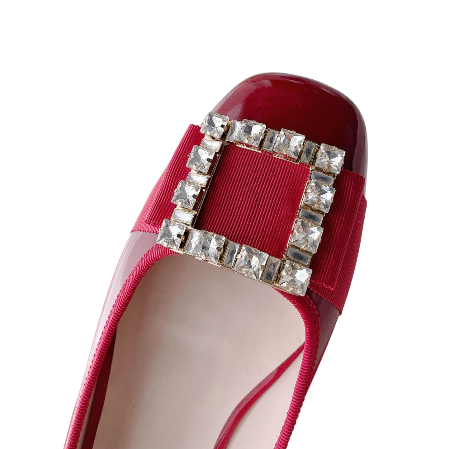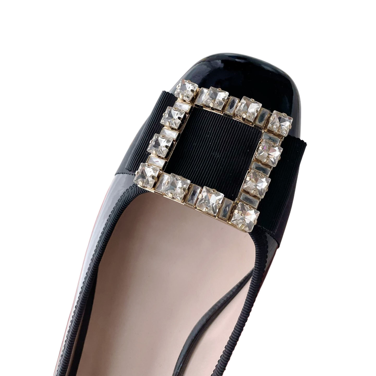 Roger Vivier Très Vivier Ballerinas Flat Shoes In White/Black/Red/Silver Patent Leather With Crystal Buckle (Heel Height 0.5cm)