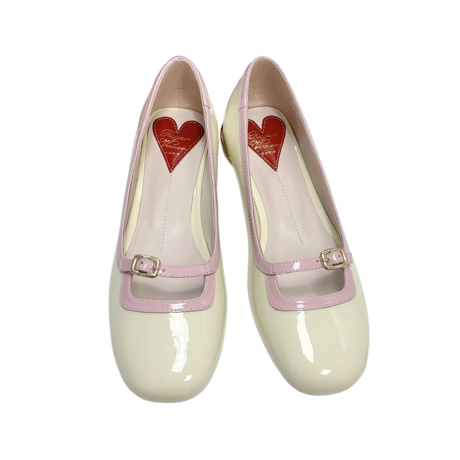 Roger Vivier U Look Ballerinas In Beige Patent Leather With Lacquered Buckle (Heel Height 2.5cm)