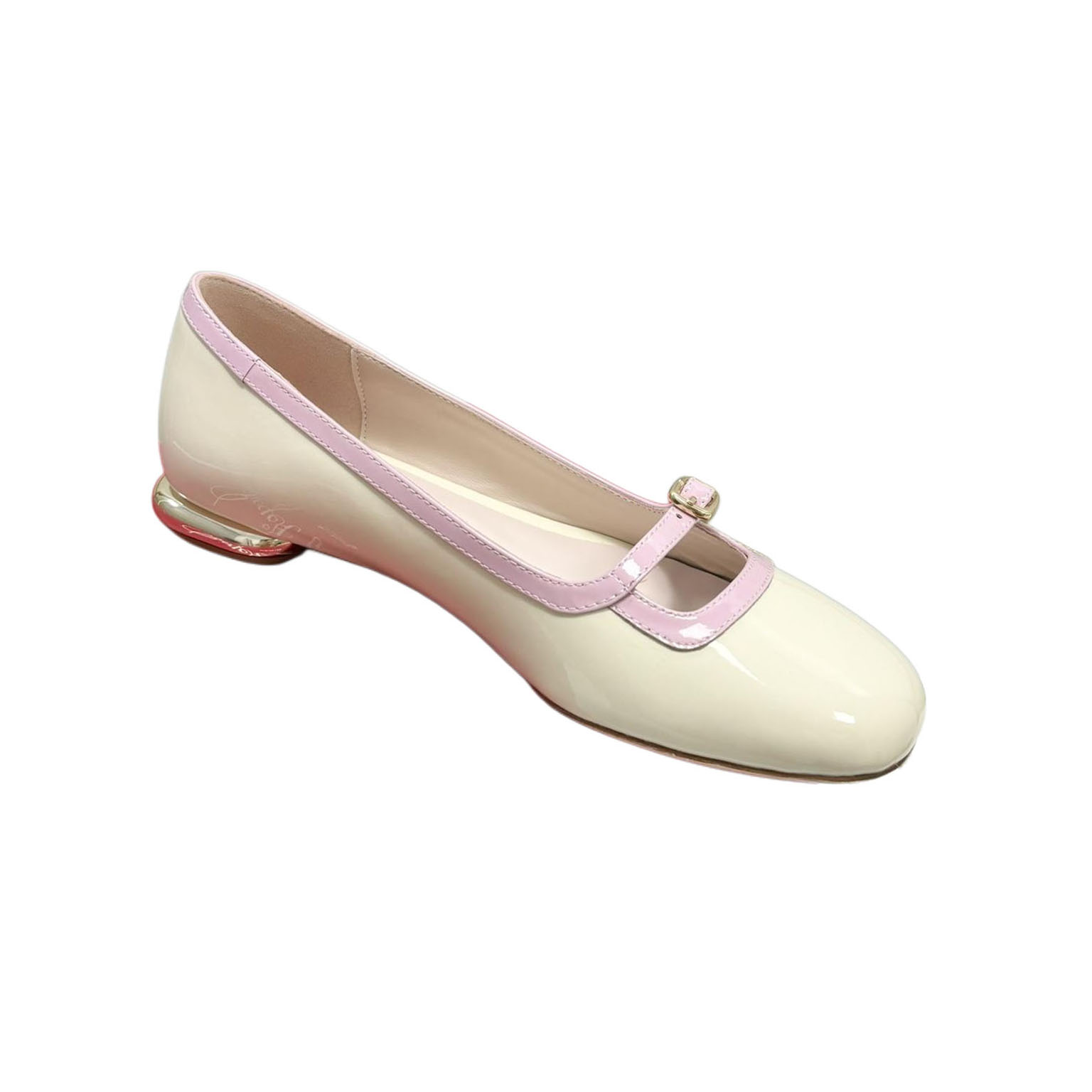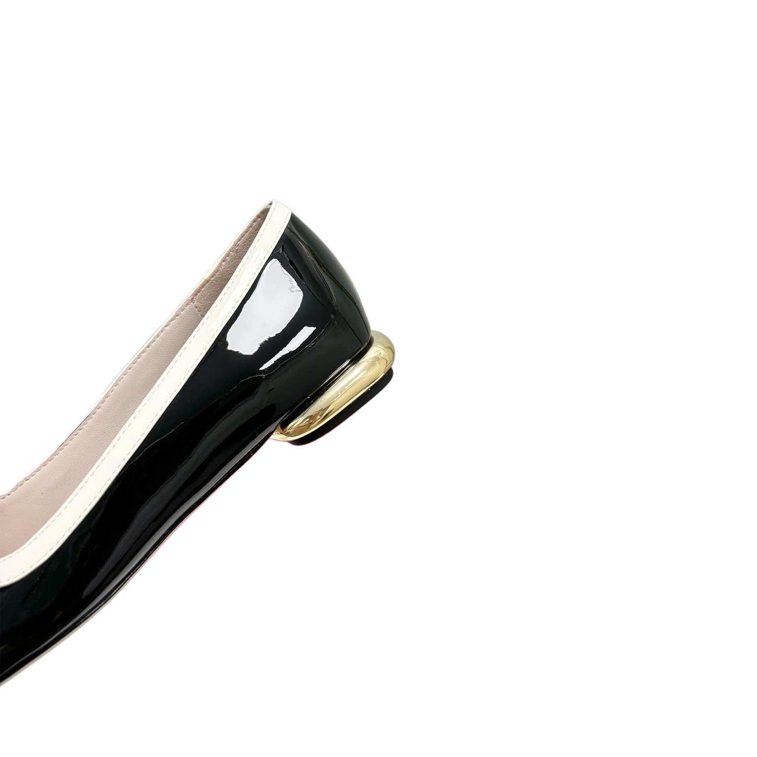 Roger Vivier Broche Vivier Ballerinas Flat Shoes In White/Black/Beige Patent Leather