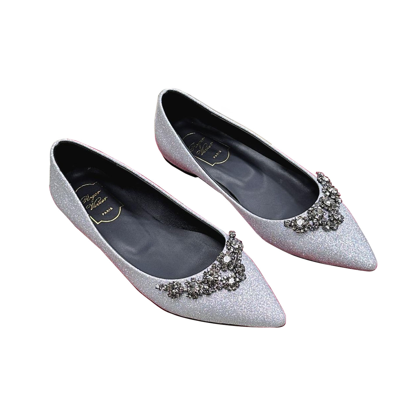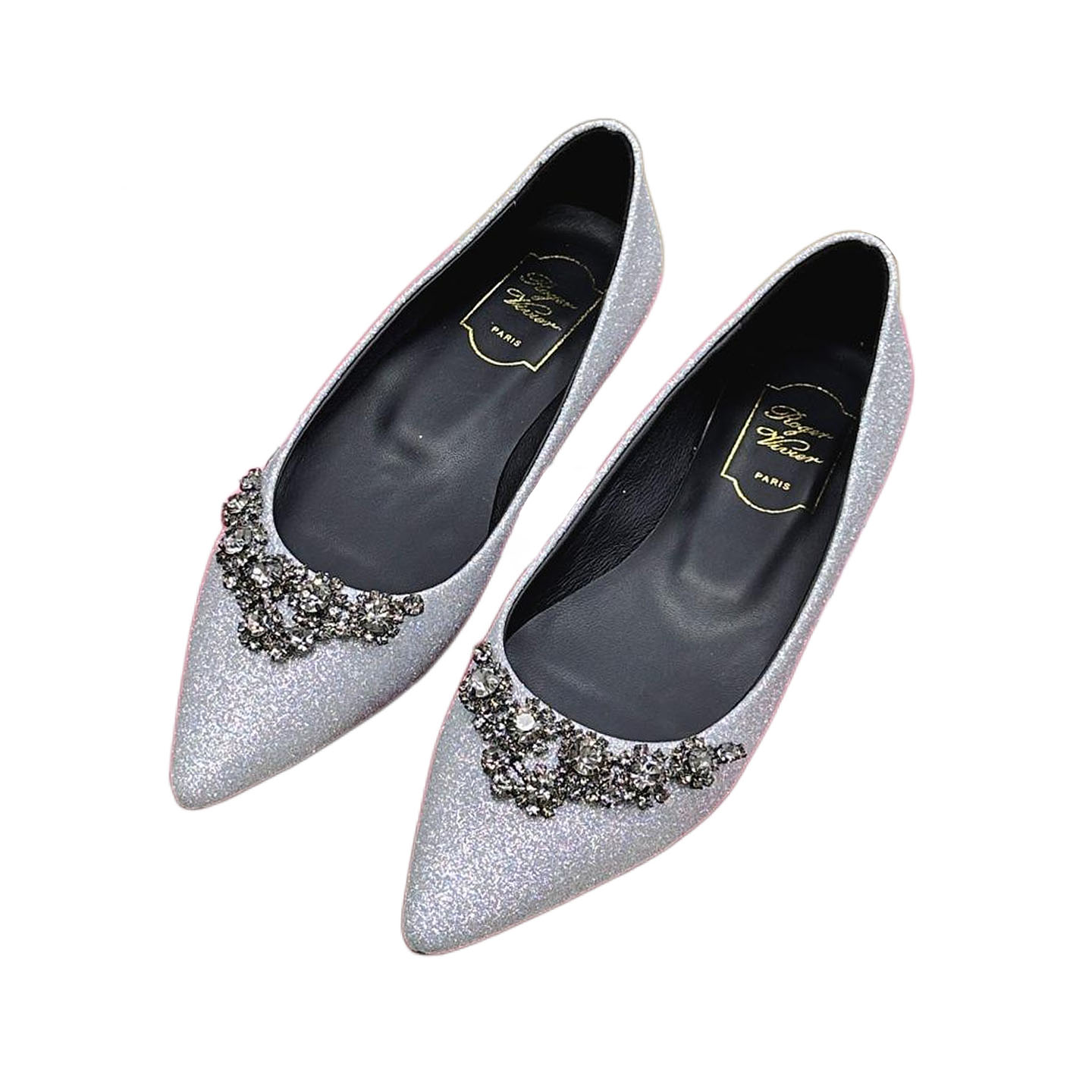 Roger Vivier Efflorescence Ballerinas In Red/Silver Satin With Crystal Flowers Buckle (Heel Height 1cm)
