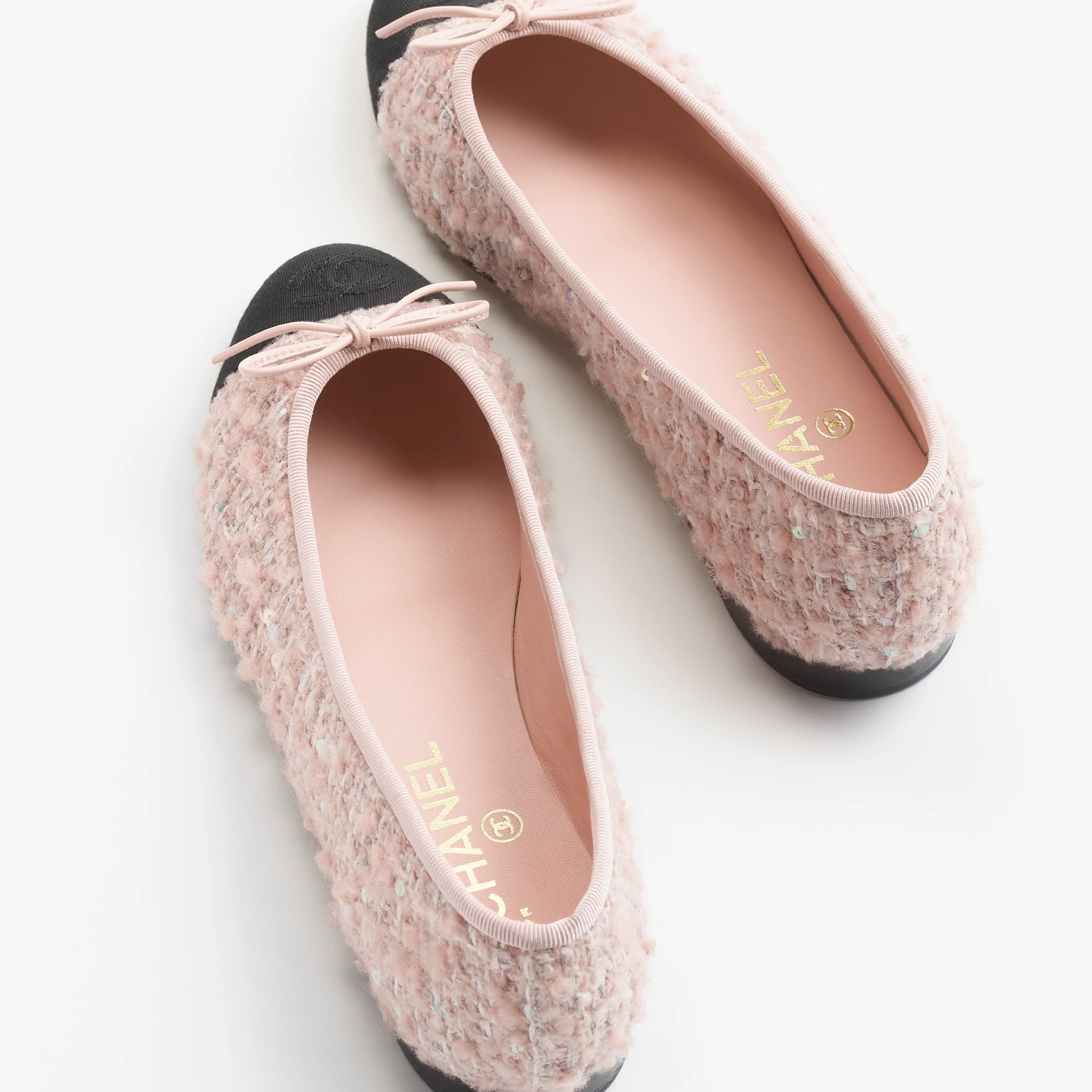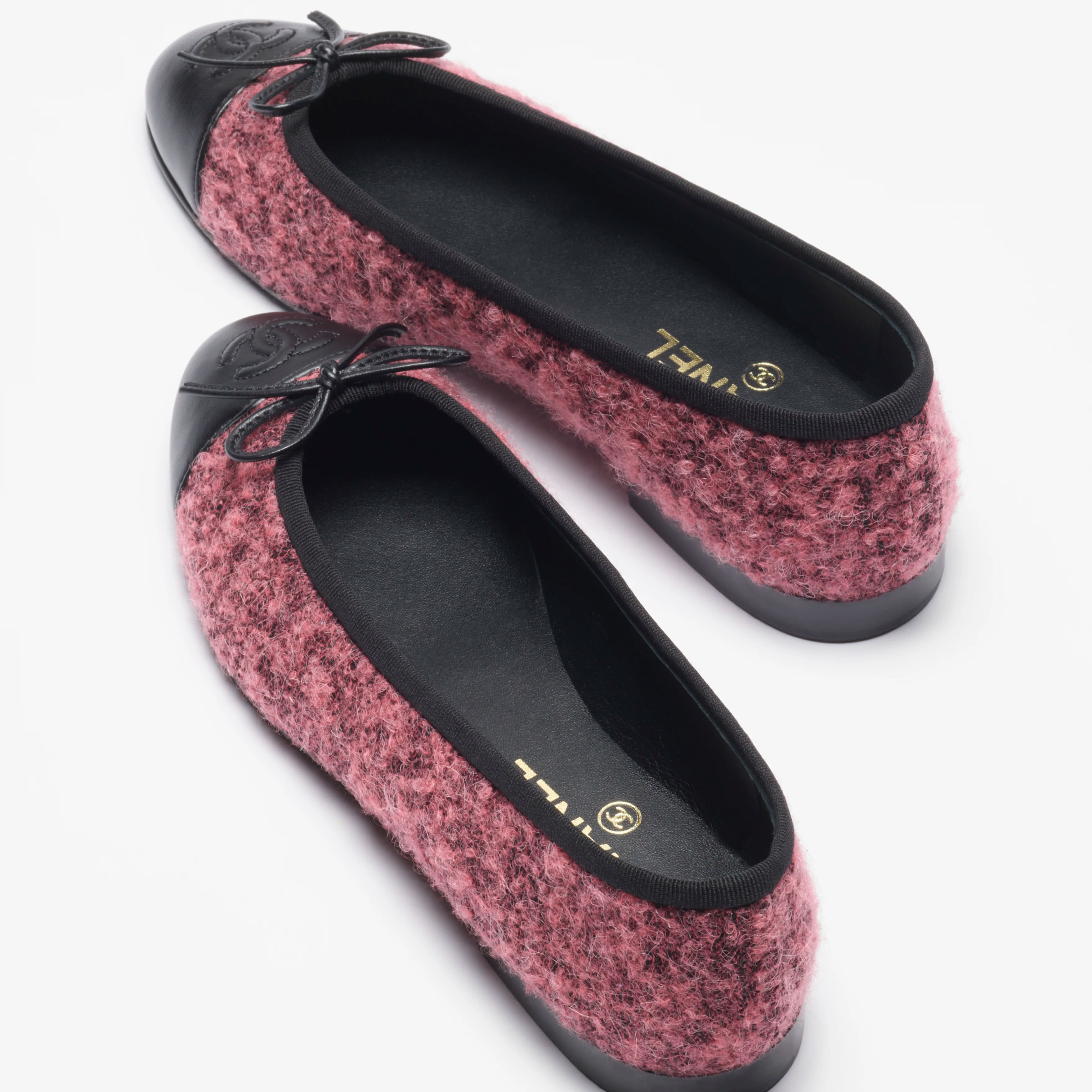Chanel Autumn and winter series flat shoes, wool twill soft woolen and lambskin pink and black Ballet Shoes