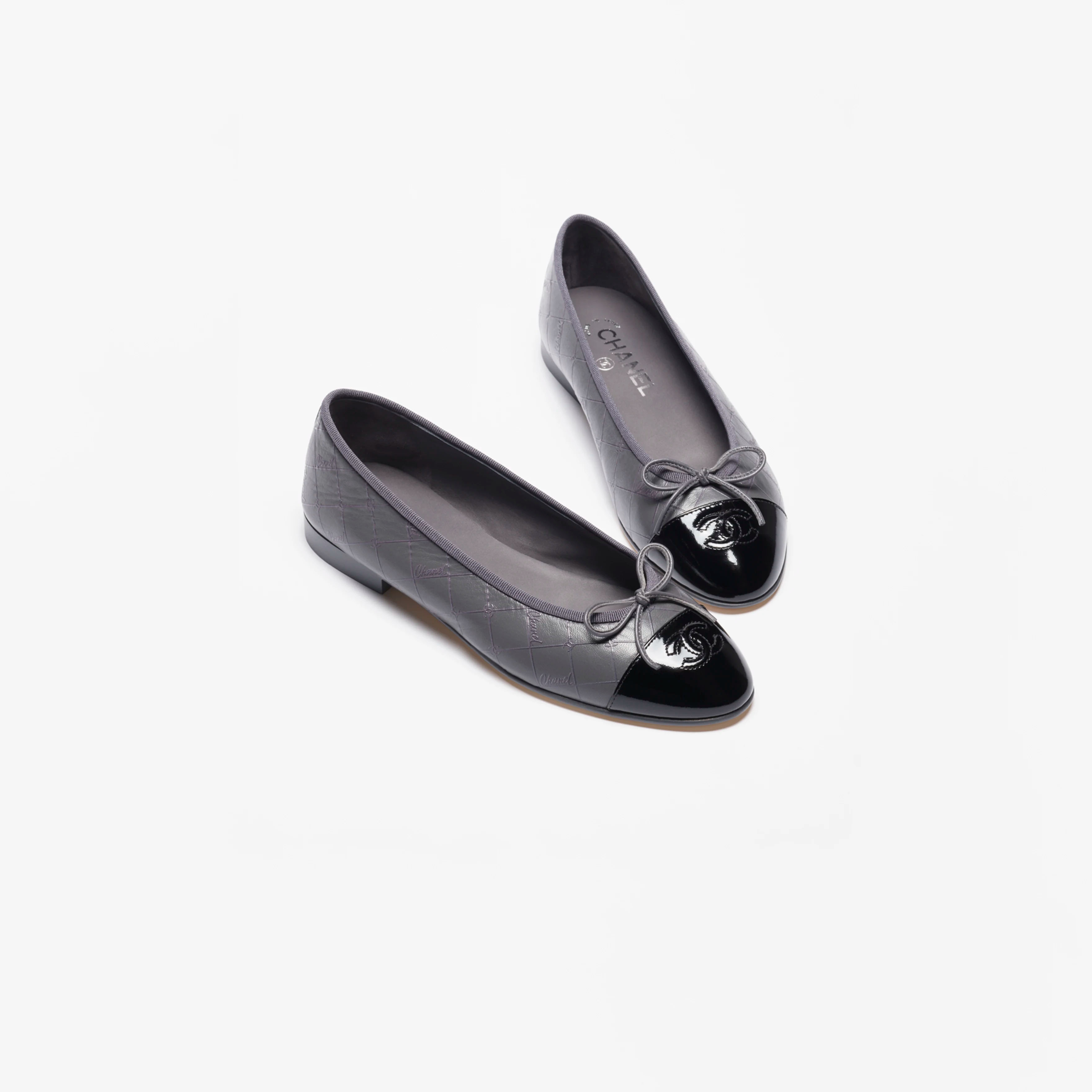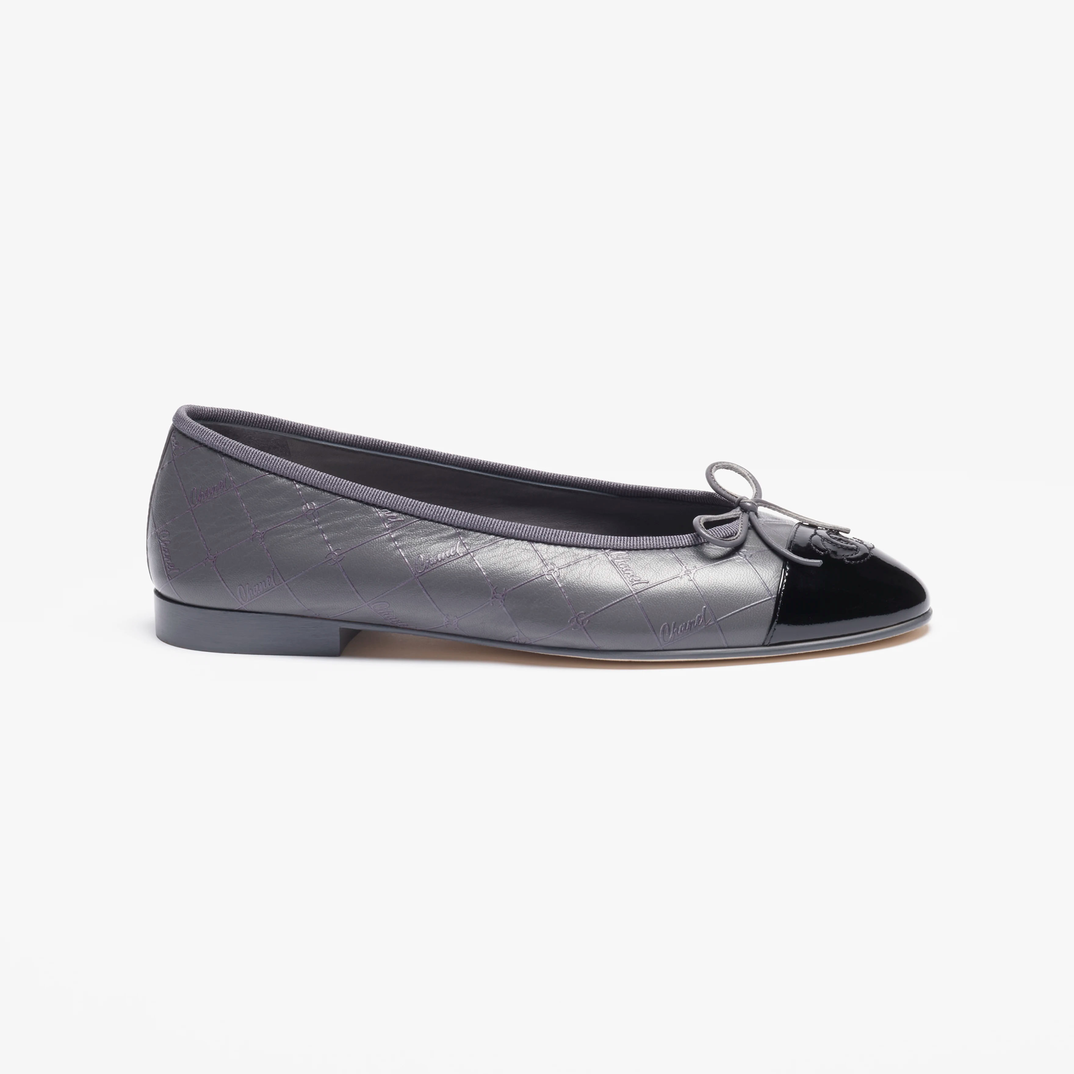 Chanel Flat shoes with printed lambskin and calf patent leather gray and black Ballet Shoes