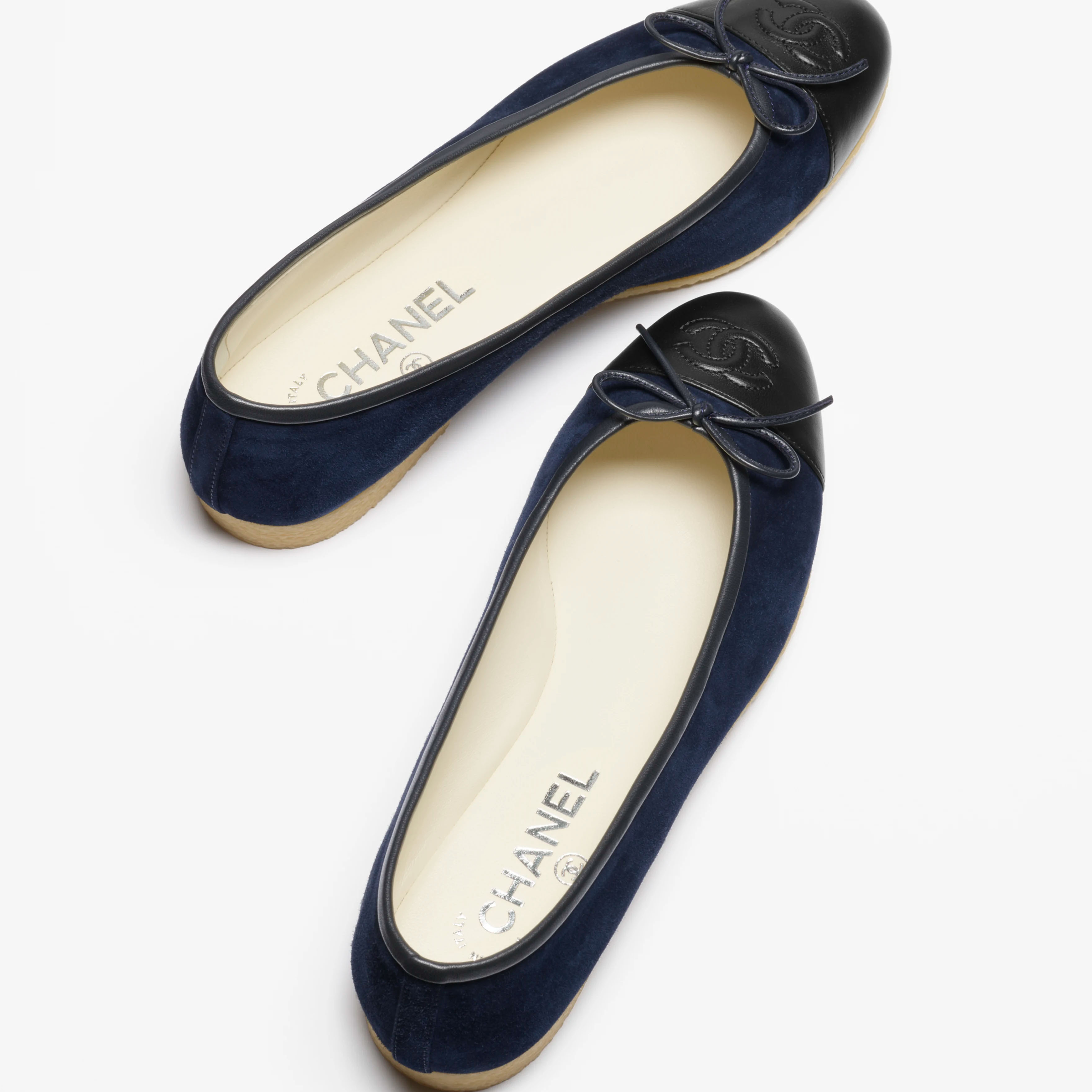 Chanel Flat shoes with suede effect, sheepskin and sheepskin leather, navy blue and black Ballet Shoes