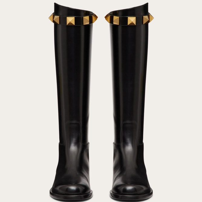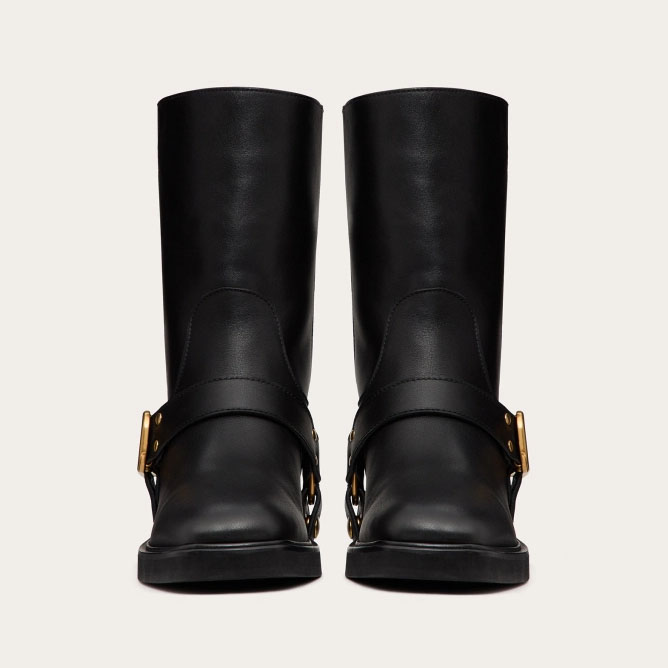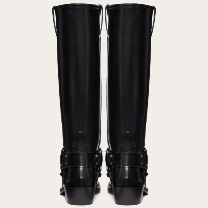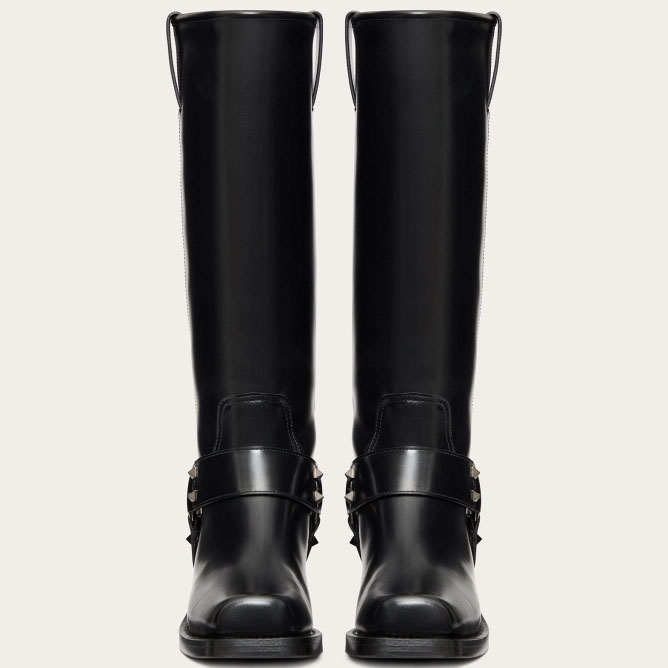 VALENTINO ROCKSTUD Calf leather motorcycle boots (heel height 4cm)