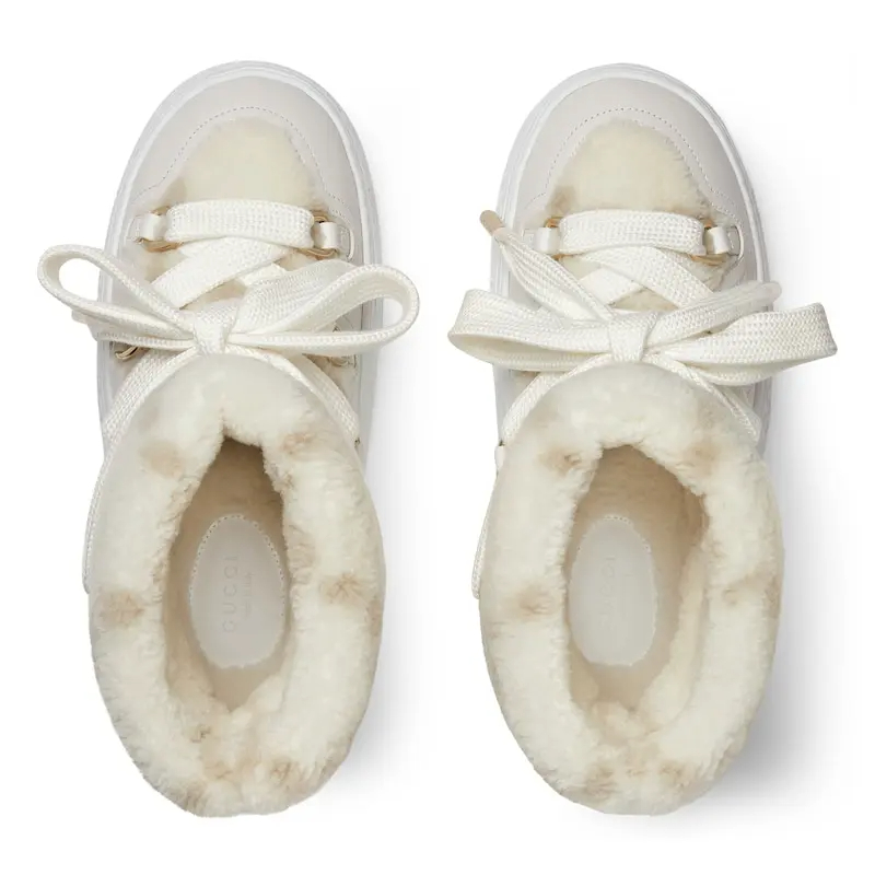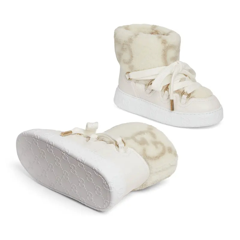 Gucci white platform woolen rolled edge women's ankle boots