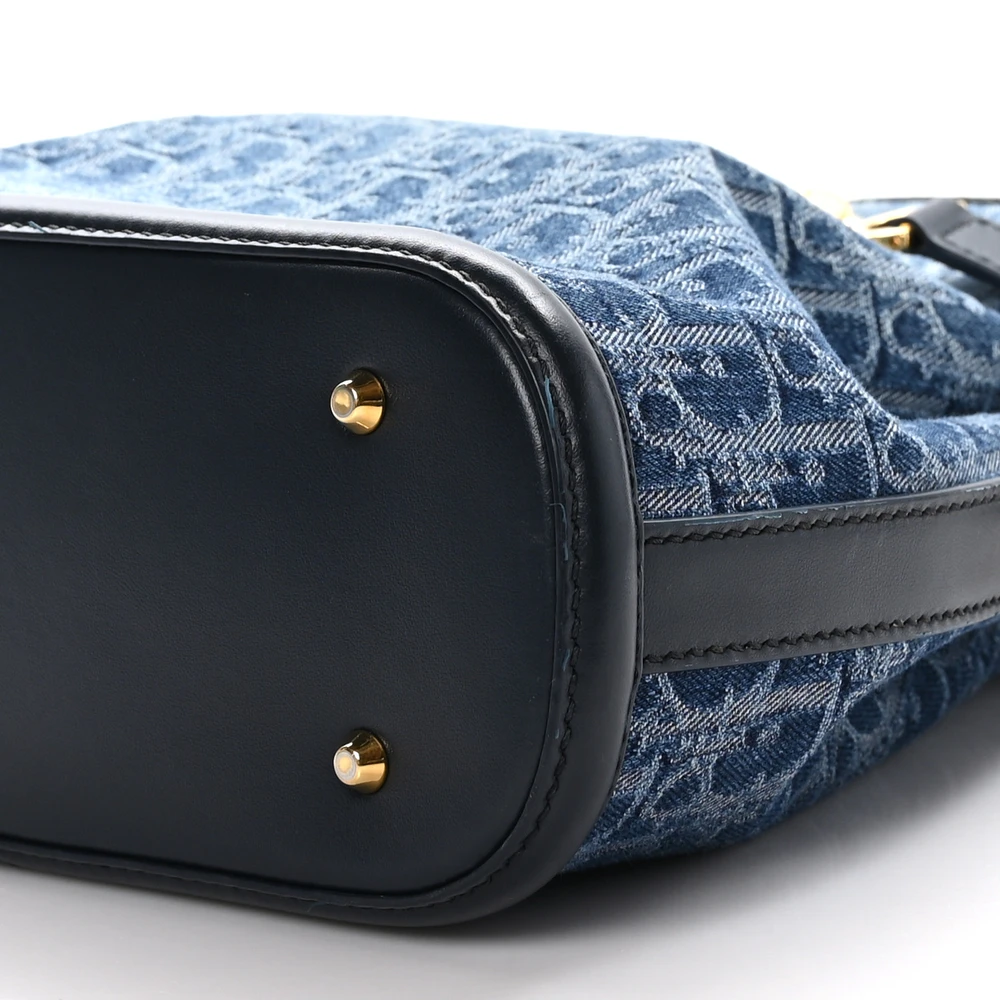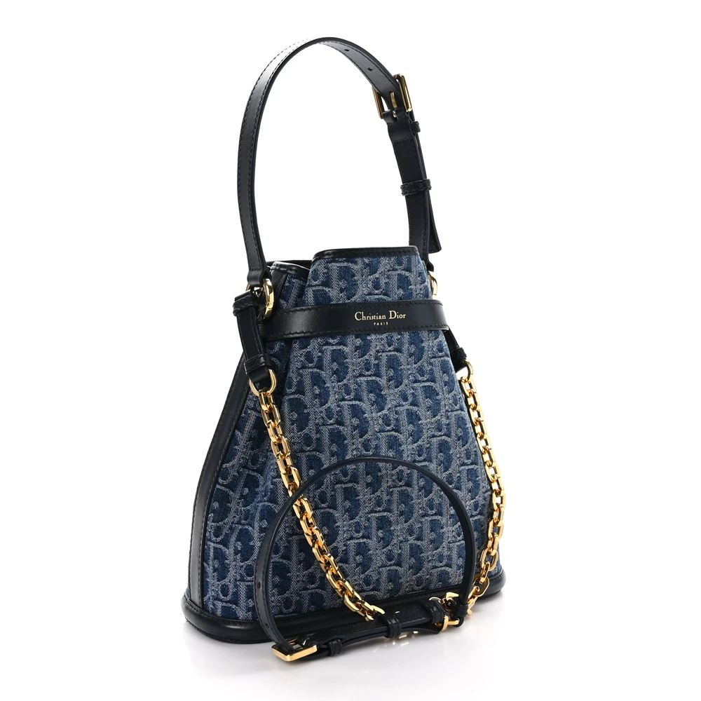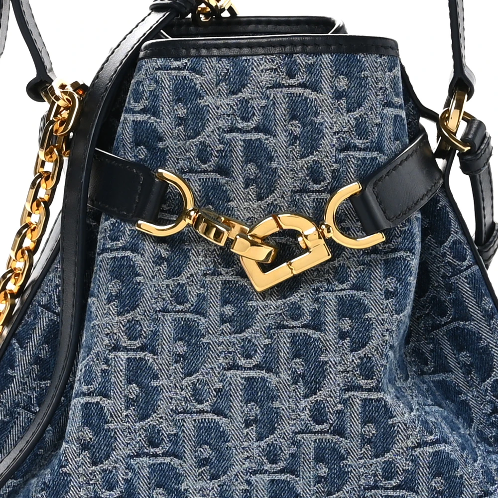 Dior Medium C'est Chain Bucket Bag Blue Oblique Canvas Gold Hardware