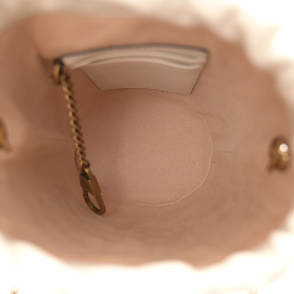 Gucci Mini GG Marmont 2.0 Bucket Bag White Calfskin Matelassé Leather Aged Gold Hardware