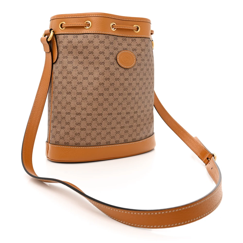 Gucci Medium Neo Vintage Drawstring Bucket Backpack New Acero Crop GG Supreme Monogram Canvas Gold Hardware
