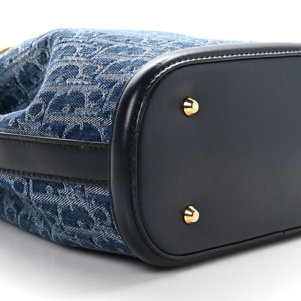 Dior Medium C'est Dior Bucket Bag Blue Oblique Canvas & Cannage Calfskin Leather Gold Hardware