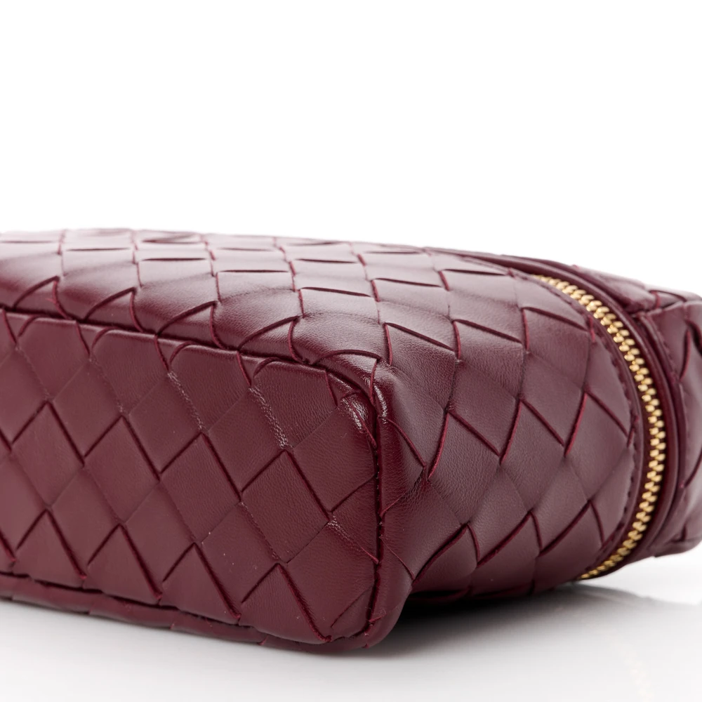 Bottega Veneta Intrecciato Bang Bang Vanity Case Cherry Nappa Leather Gold Hardware