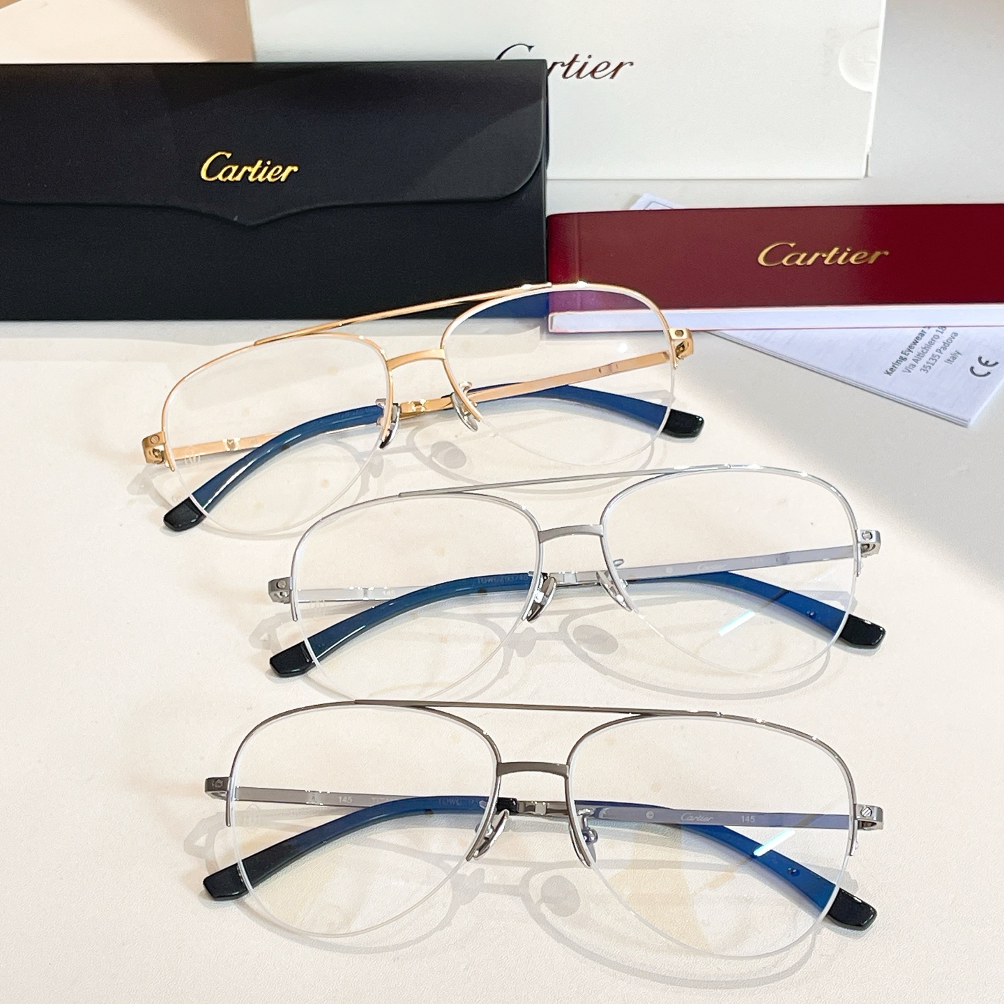 Cartier glasses black gold/black silver/brown gold/black rose gold/blue/brown rose gold/silver/leopard color Size 57口17 140
