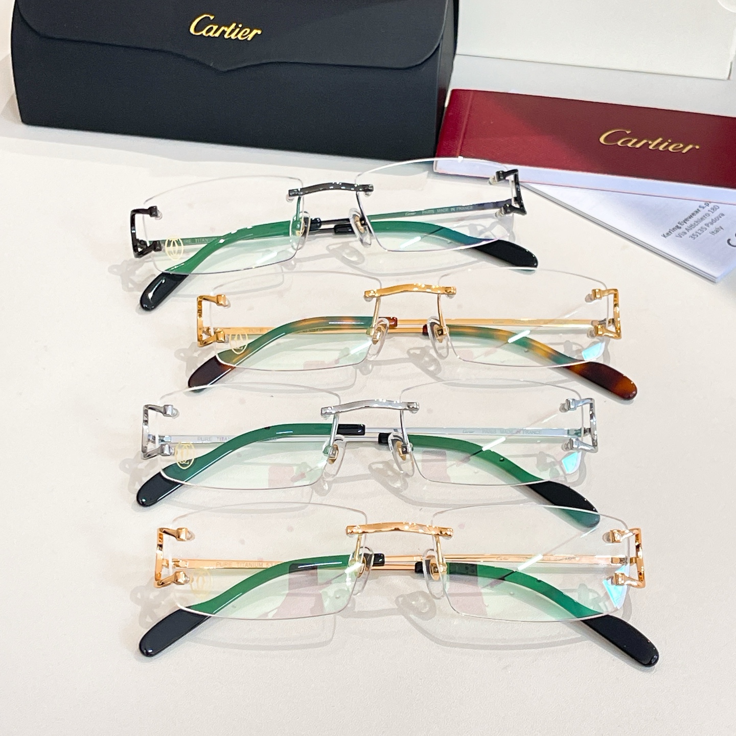 Cartier square frame glasses black blue/brown gold/red gold/black gold/black silver/brown silver color Size 59口15-140