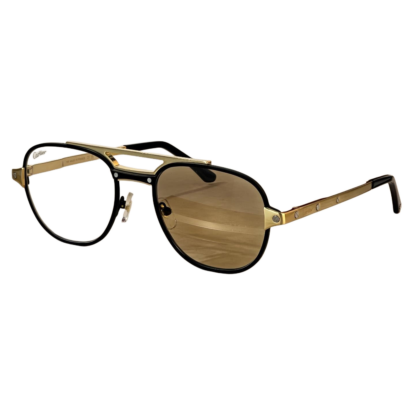 Cartier Pilot glasses black gold/tawny/grey silver/brown/black/brown black gold/grey black gold color Size 59口17-145