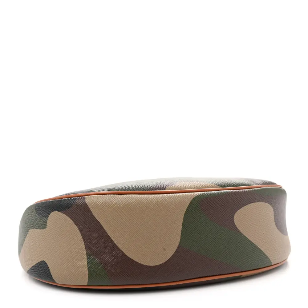 Celine Medium Ava Logo Triomphe Shoulder Bag Khaki Camouflage Canvas & Calfskin Leather Gold Hardware