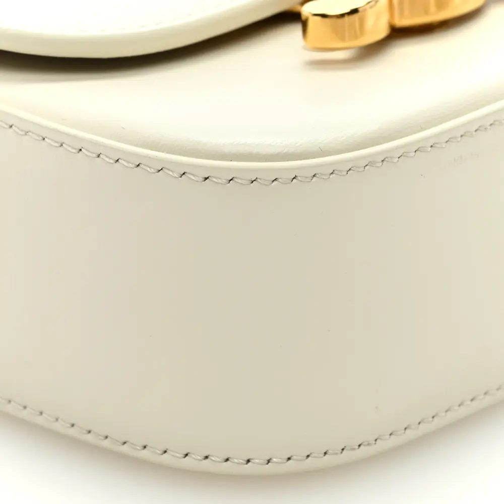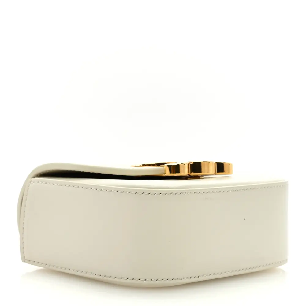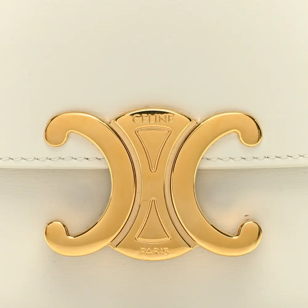 Celine Mini Triomphe Bag White Shiny Calfskin Leather Gold Hardware