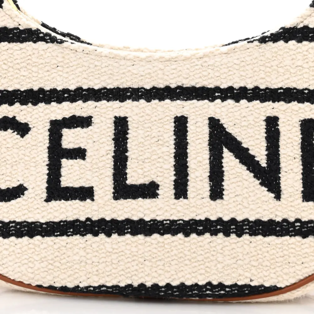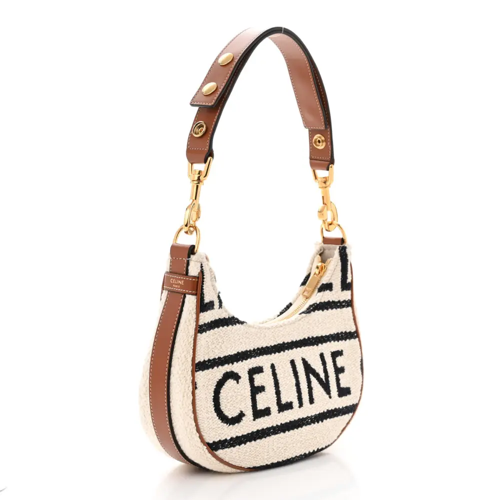 Celine Medium Ava Shoulder Bag White/Black Textile Gold Hardware