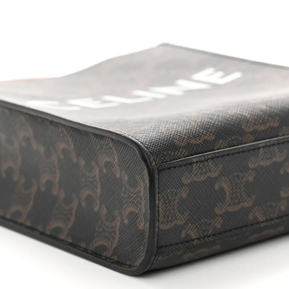 Celine Mini Vertical Cabas Tan Triomphe Canvas & Calfskin Leather Gold Hardware